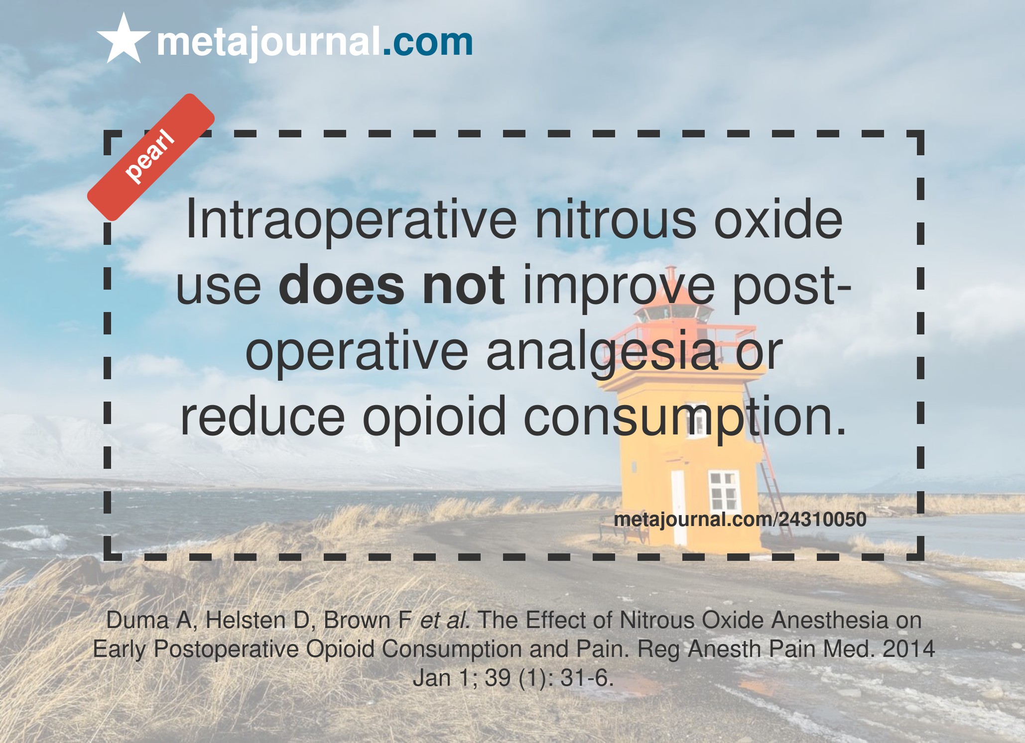 Intraoperative nitrous oxide use does not improve post-operative analgesia or reduce opioid consumption.
