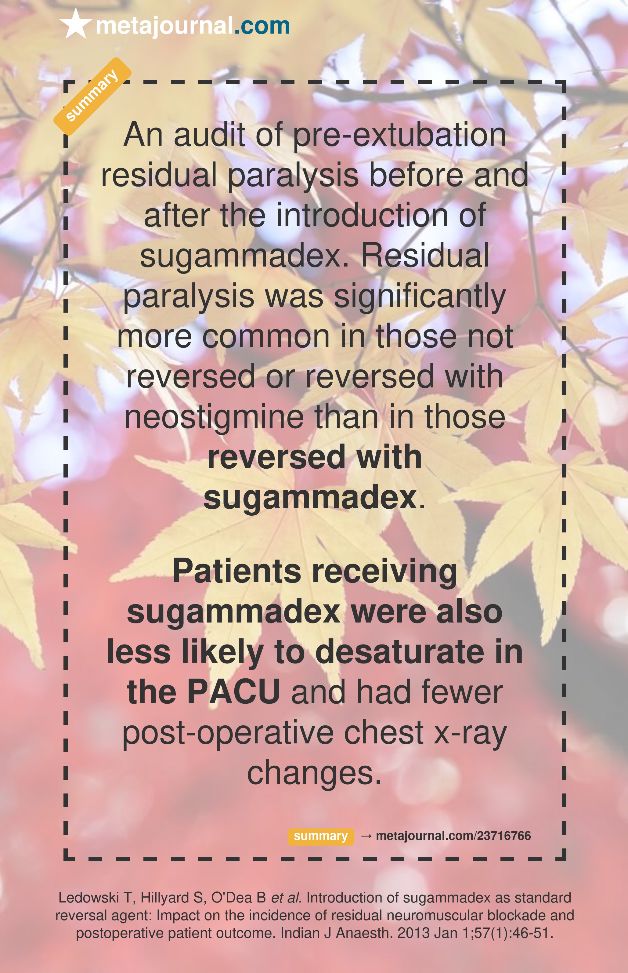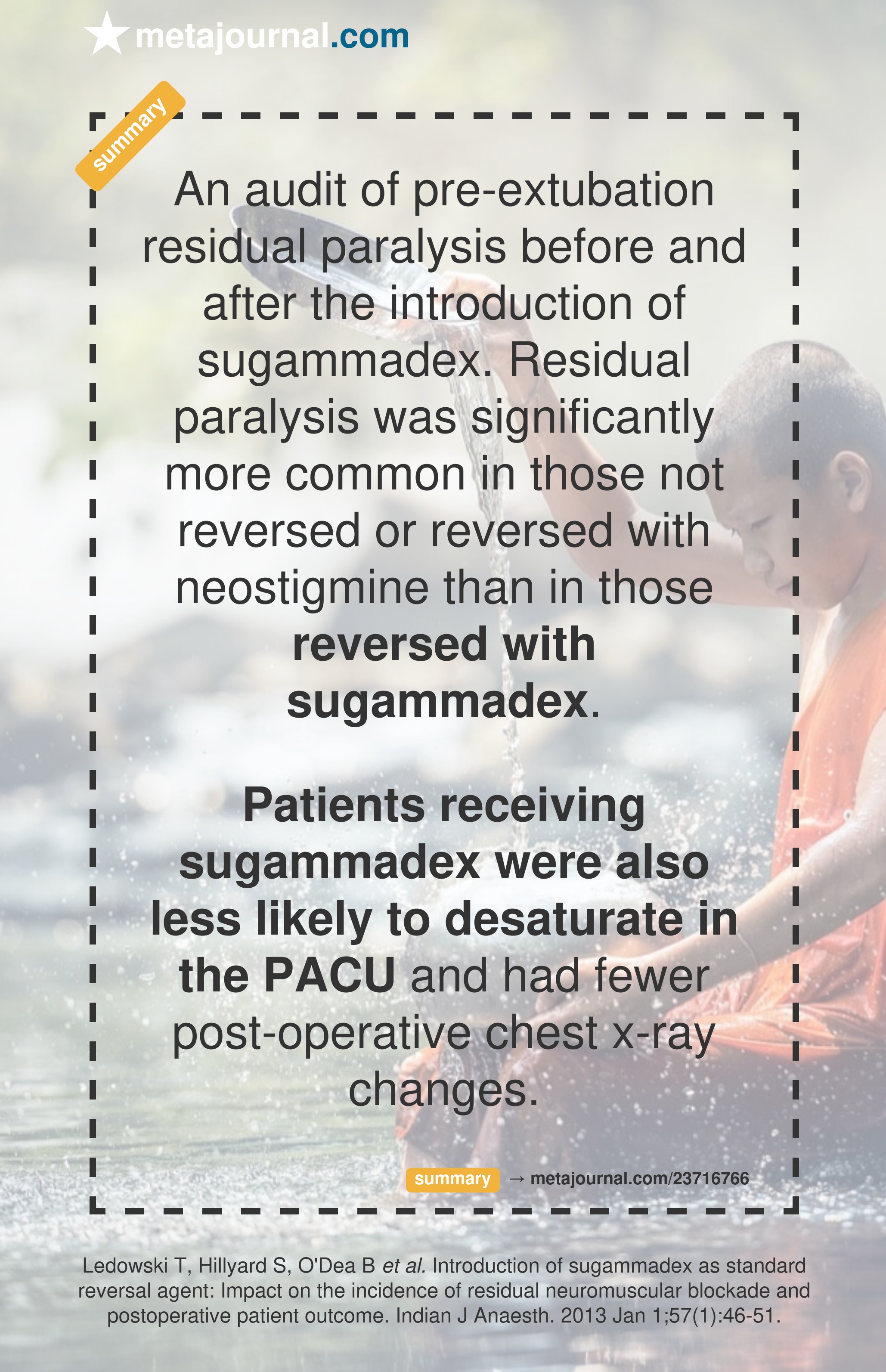 Patients receiving sugammadex were also less likely to desaturate in the PACU and had fewer post-operative chest x-ray changes.