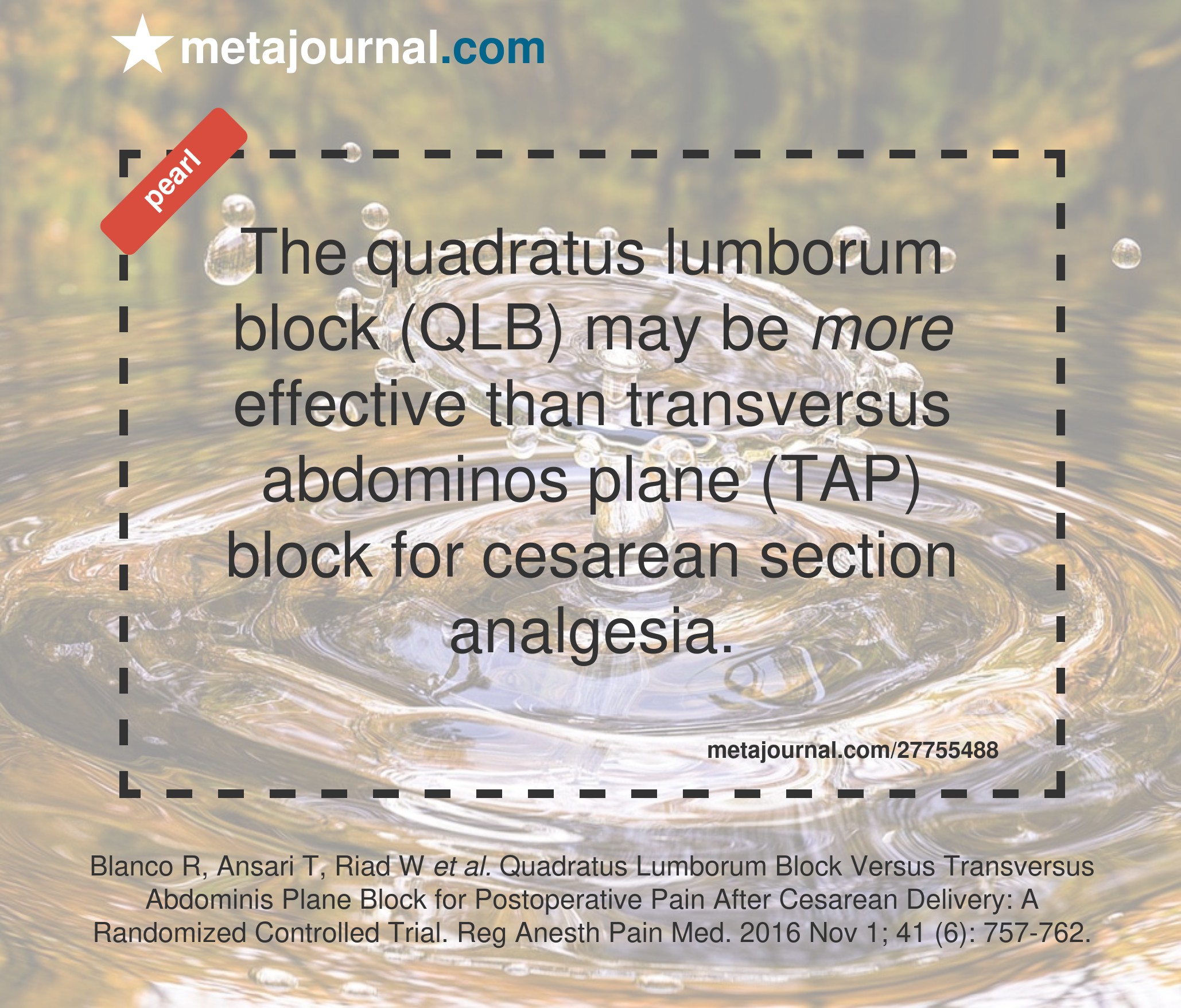 The quadratus lumborum block (QLB) may be more effective than transversus abdominos plane (TAP) block for cesarean section analgesia.