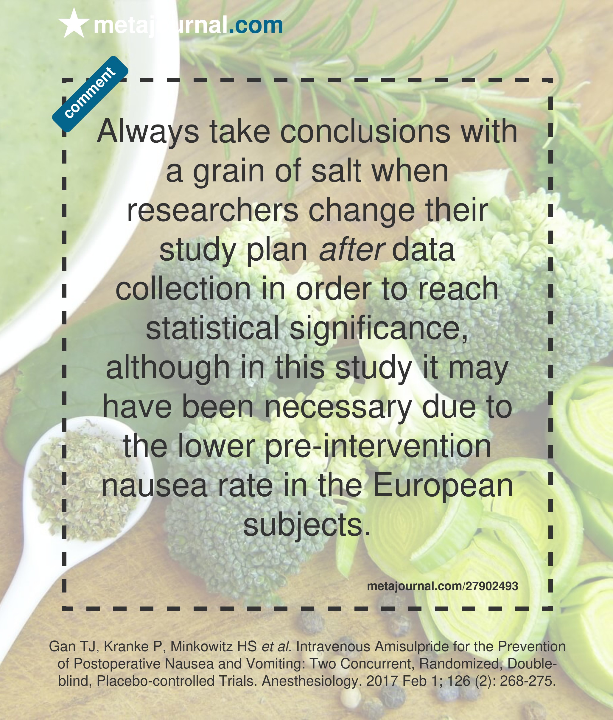 Intravenous Amisulpride for the Prevention of Postoperative Nausea and Vomiting: Two Concurrent, Randomized, Double-blind, Placebo-controlled Trials.
