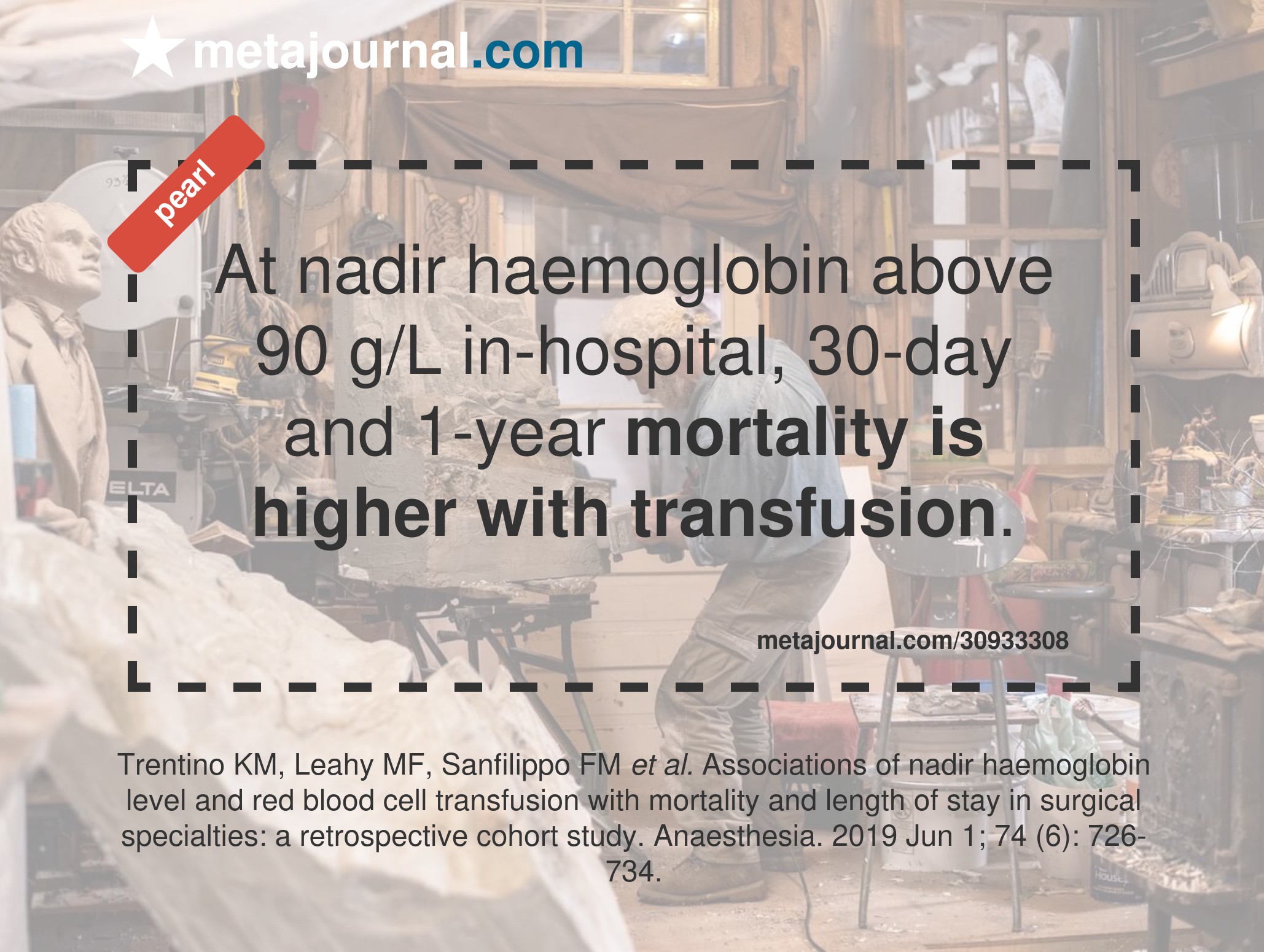 Associations of nadir haemoglobin level and red blood cell transfusion with mortality and length of stay in surgical specialties: a retrospective cohort study.