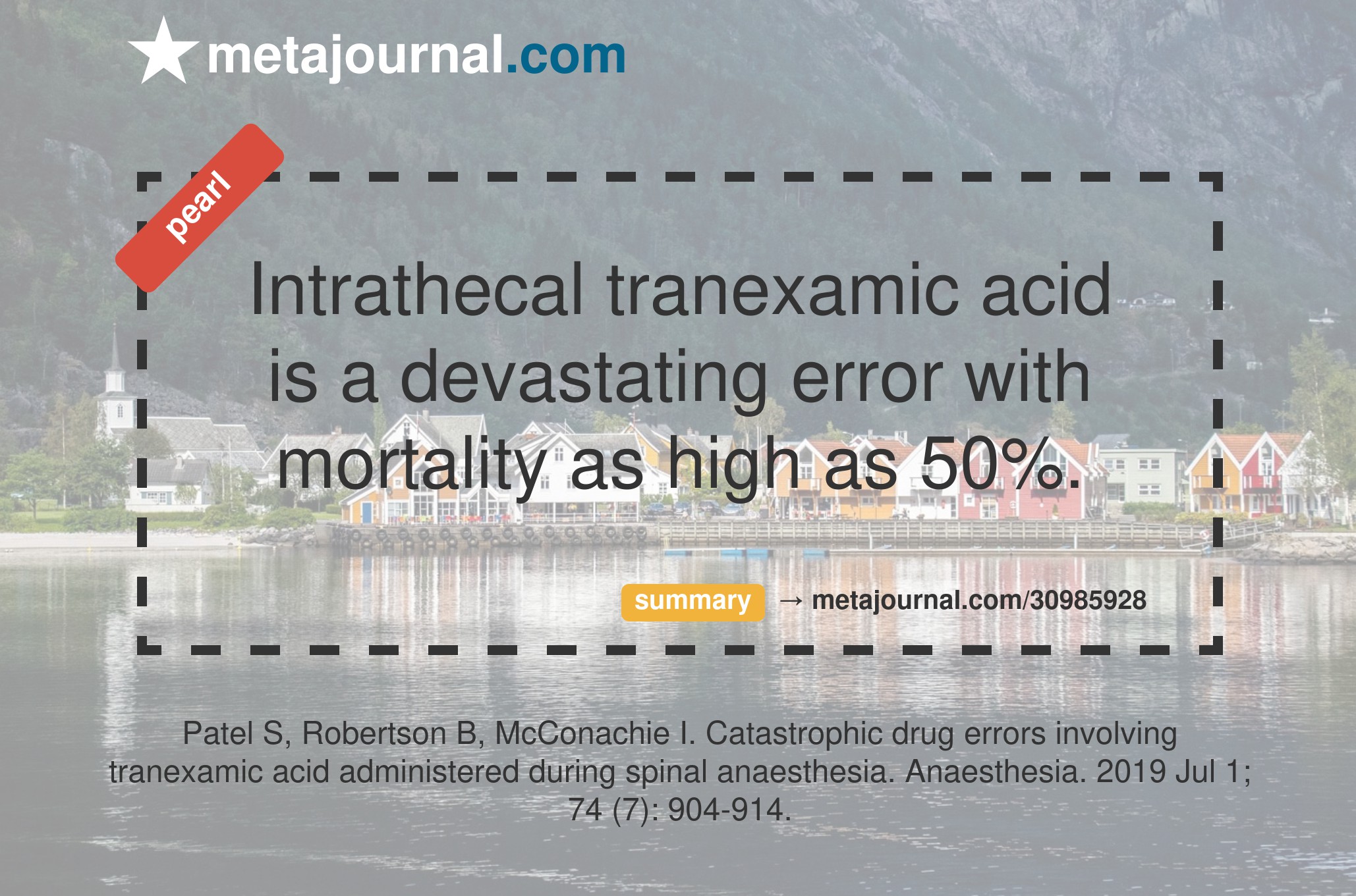 This article appears in the collection: Inadvertent spinal tranexamic acid: a devastating error.