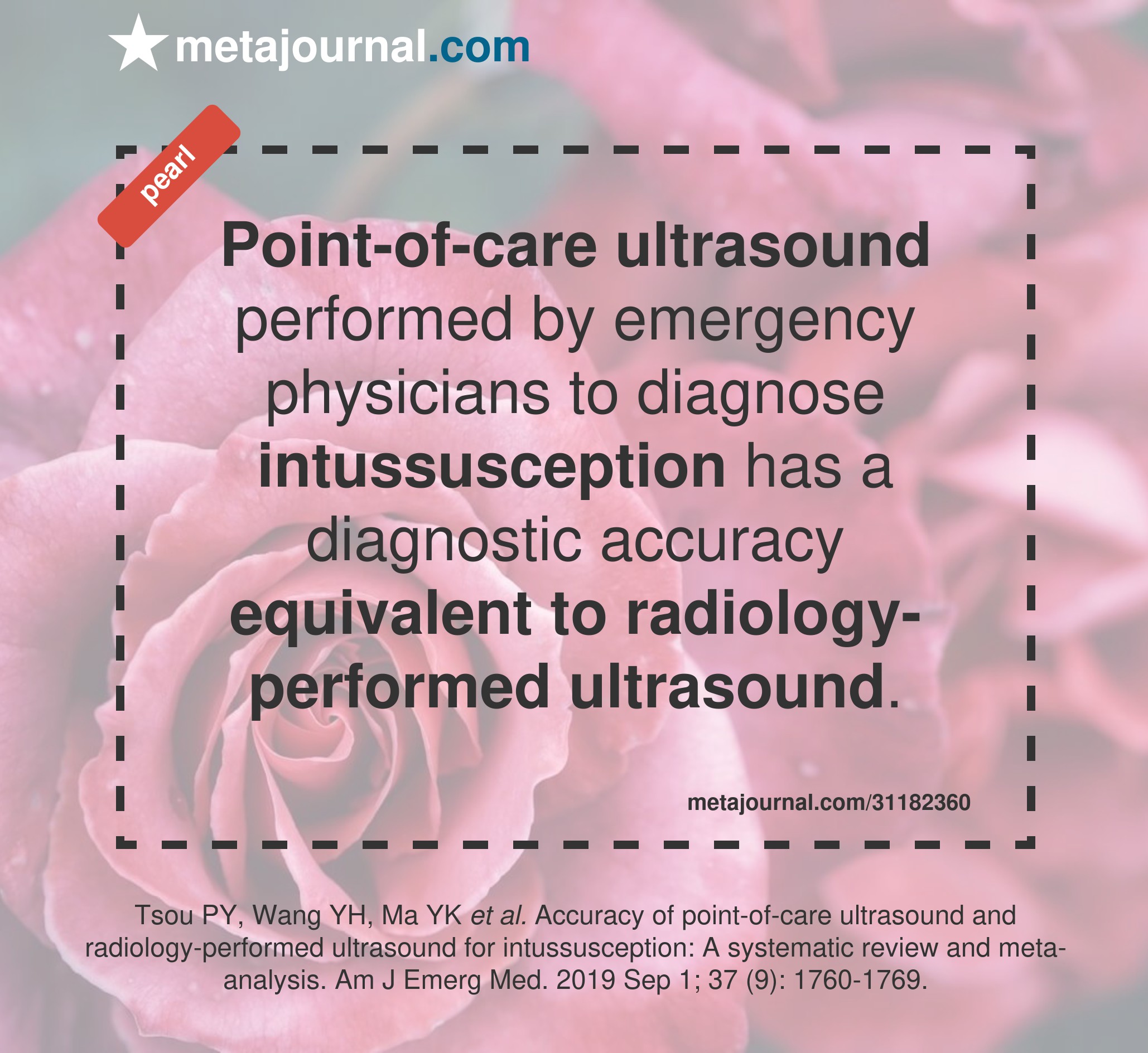Accuracy of point-of-care ultrasound and radiology-performed ultrasound for intussusception: A systematic review and meta-analysis.