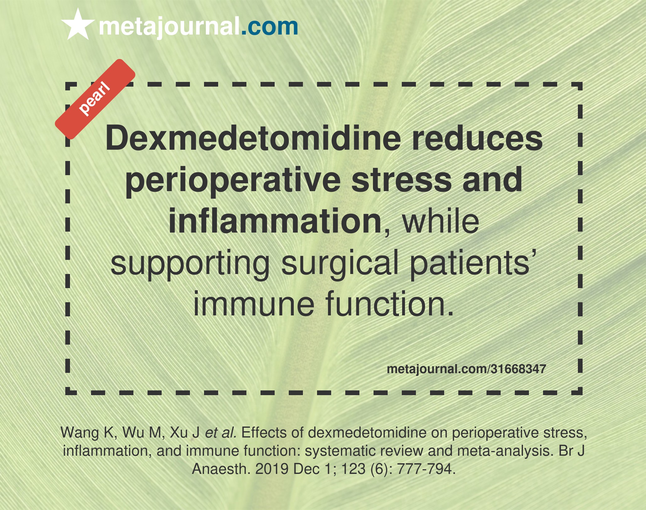 Dexmedetomidine reduces perioperative stress and inflammation, while supporting surgical patients’ immune function.
