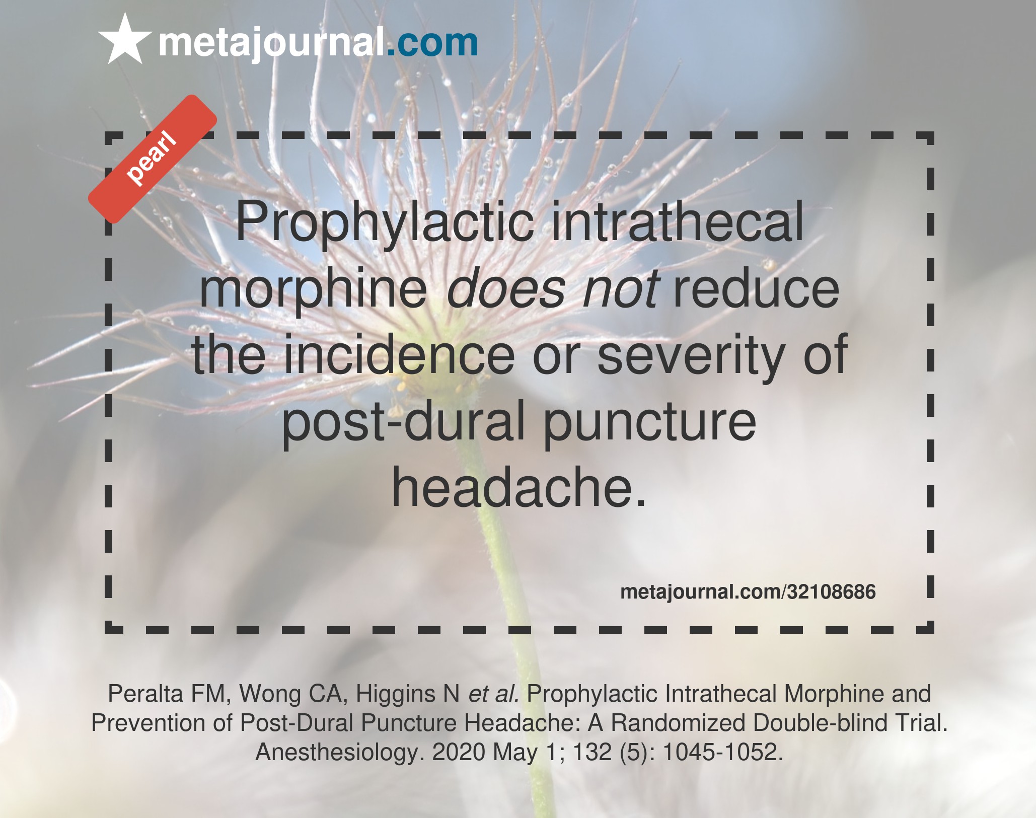 Prophylactic Intrathecal Morphine and Prevention of Post-Dural Puncture Headache: A Randomized Double-blind Trial.