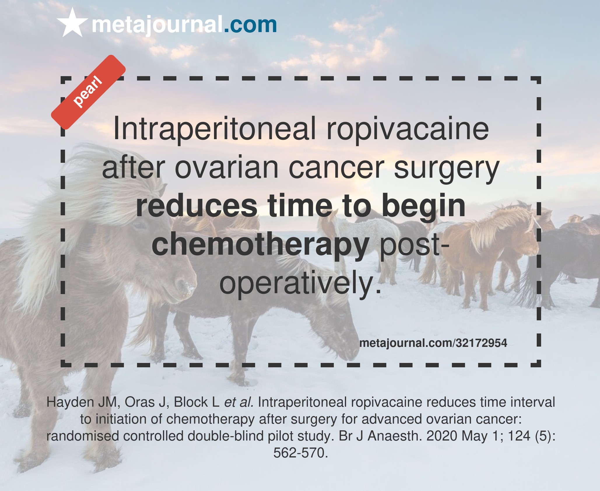 Intraperitoneal ropivacaine reduces time interval to initiation of chemotherapy after surgery for advanced ovarian cancer: randomised controlled double-blind pilot study.
