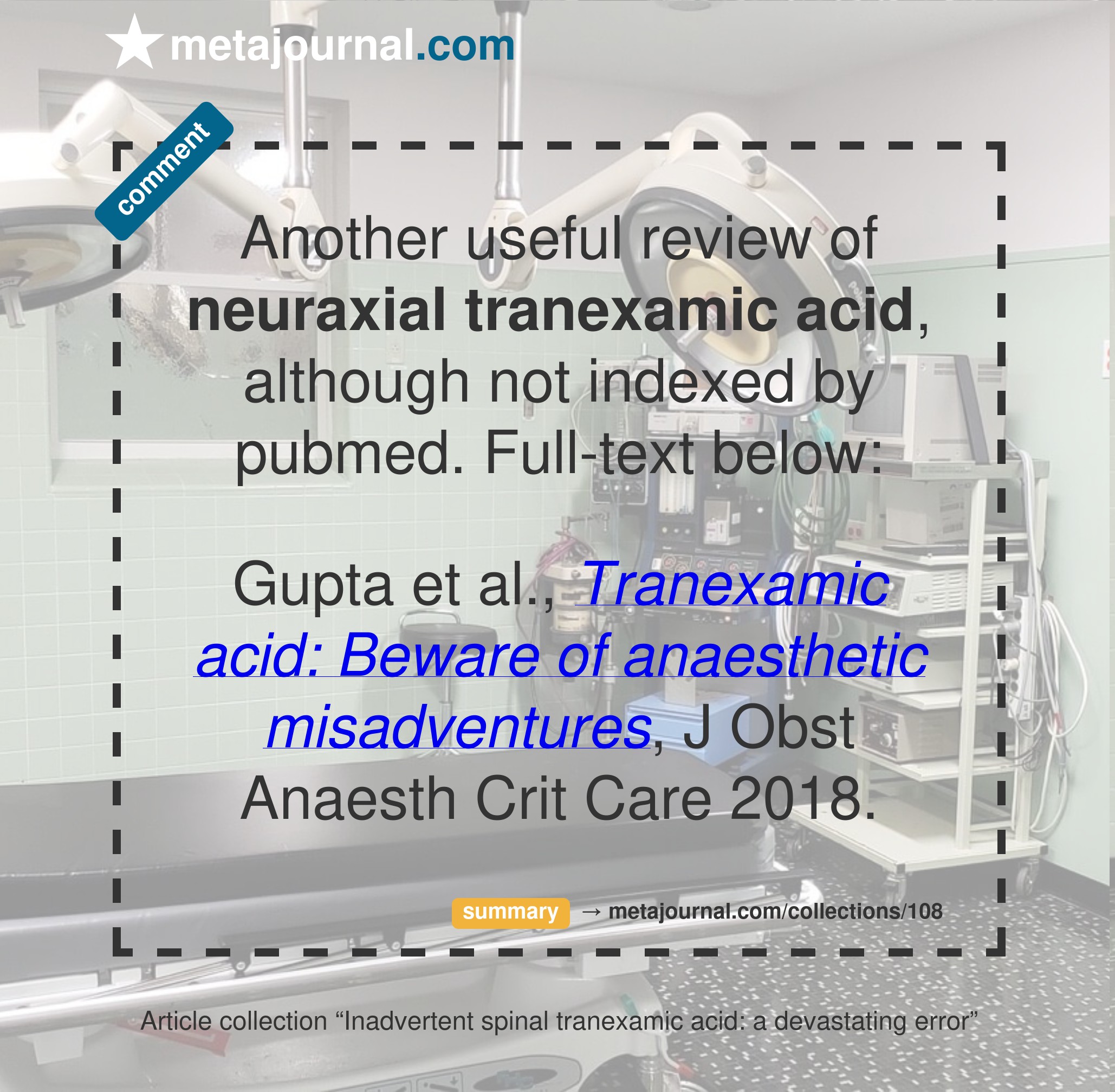 Gupta et al., Tranexamic acid: Beware of anaesthetic misadventures, J Obst Anaesth Crit Care 2018.