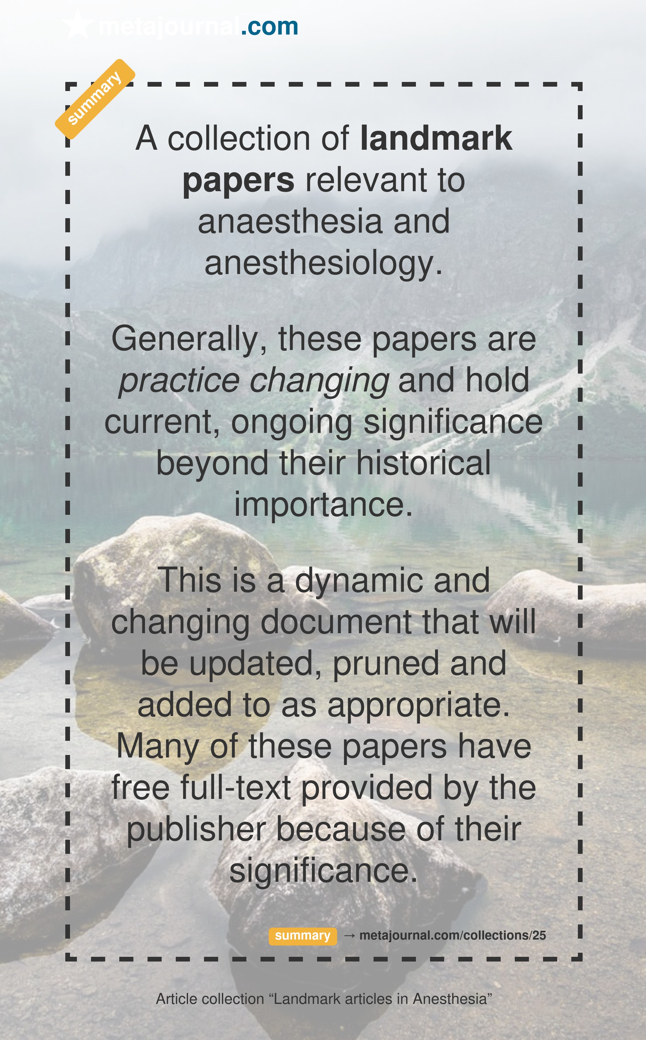 A collection of landmark papers relevant to anaesthesia and anesthesiology.