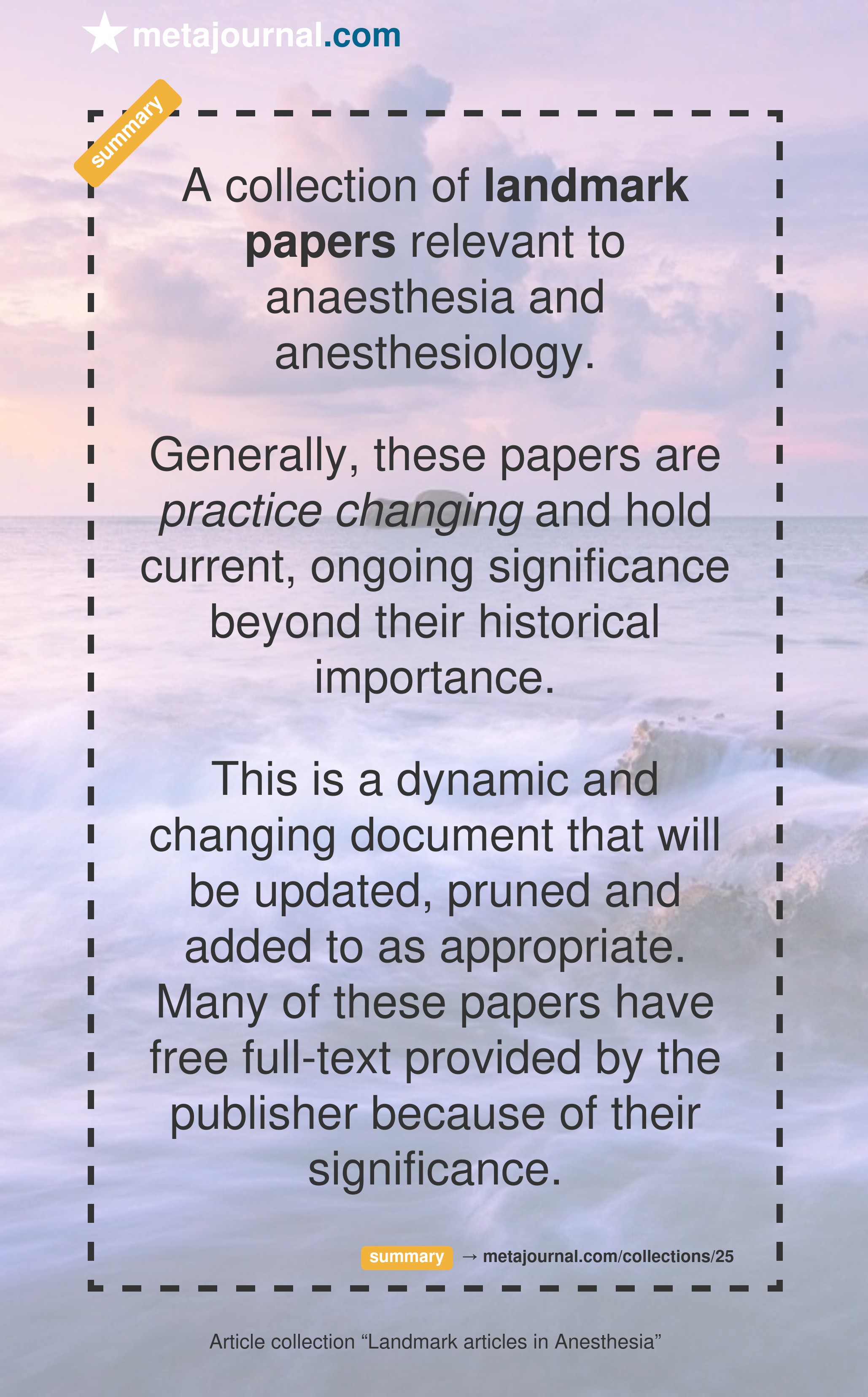 A collection of landmark papers relevant to anaesthesia and anesthesiology.