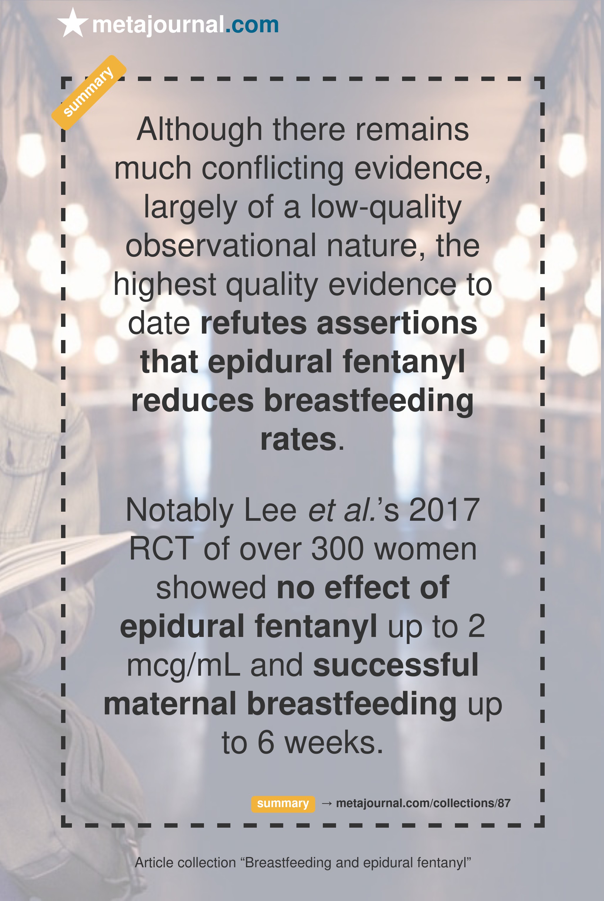 Notably Lee et al.’s 2017 RCT of over 300 women showed no effect of epidural fentanyl up to 2 mcg/mL and successful maternal breastfeeding up to 6 weeks.