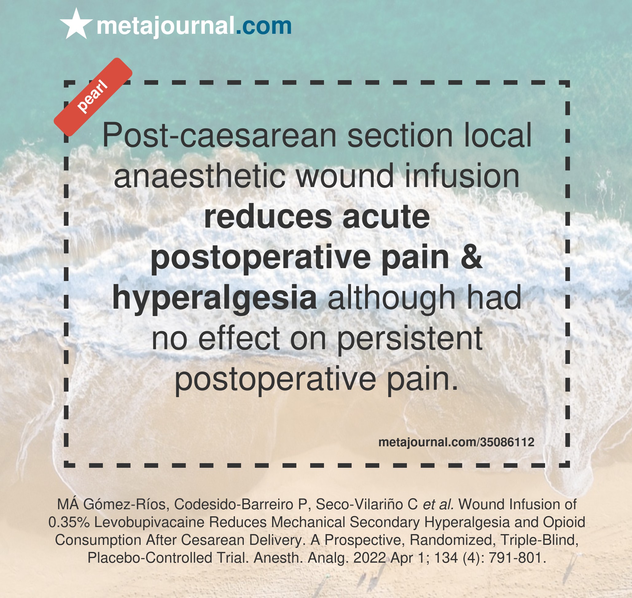 Post-caesarean section local anaesthetic wound infusion reduces acute postoperative pain & hyperalgesia although had no effect on persistent postoperative pain.