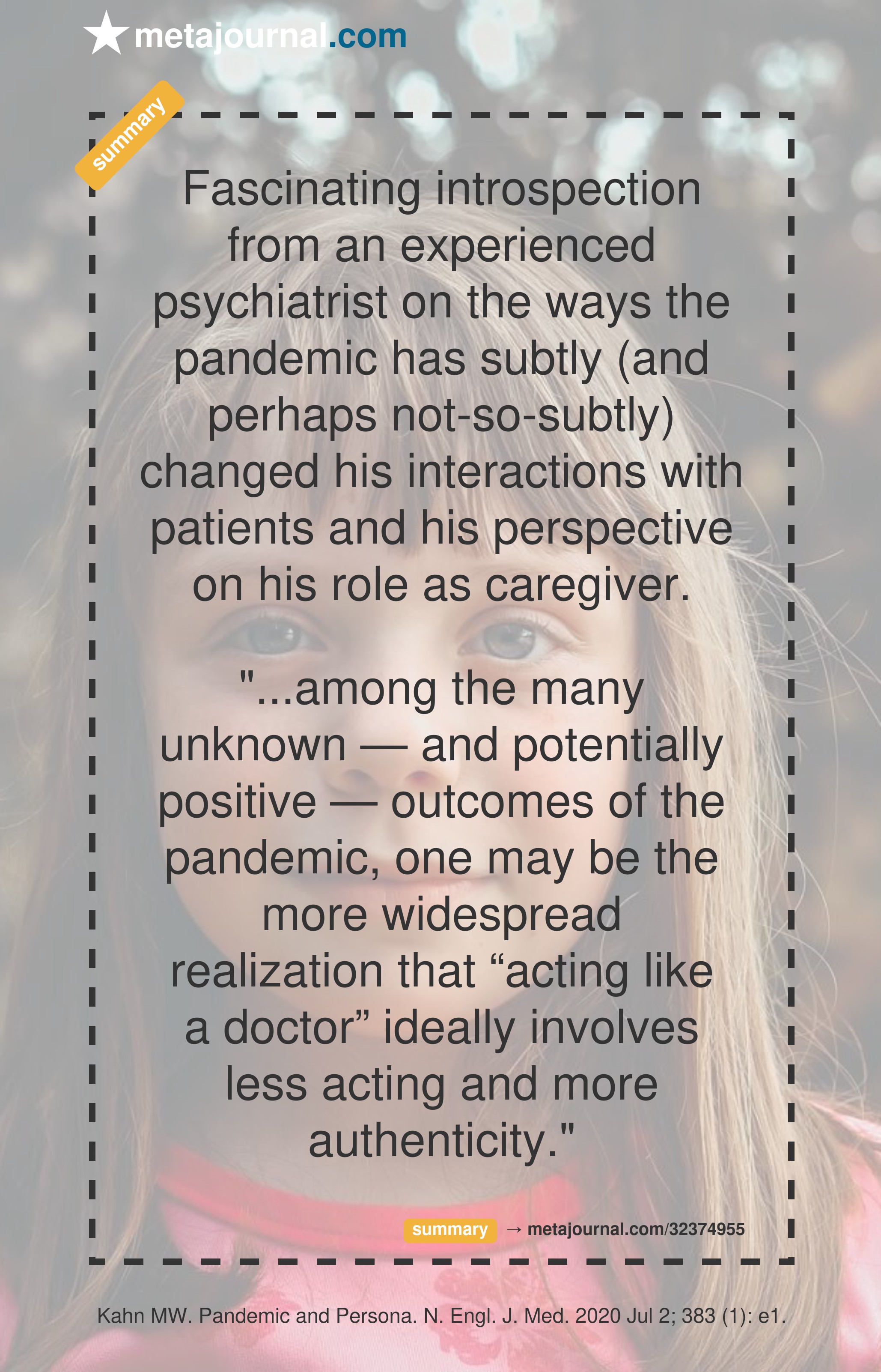 "...among the many unknown — and potentially positive — outcomes of the pandemic, one may be the more widespread realization that “acting like a doctor” ideally involves less acting and more authenticity."