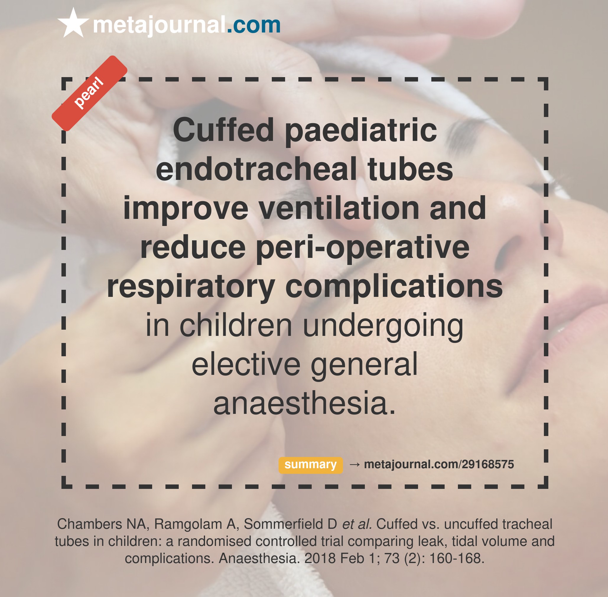 More recently, Chamber's 2018 RCT compared cuffed and uncuffed ETTs in children undergoing elective general anaesthesia, and found that cuffed tubes improved ventilation and reduced short-term post-operative respiratory complications, in addition to decreasing tube changes.