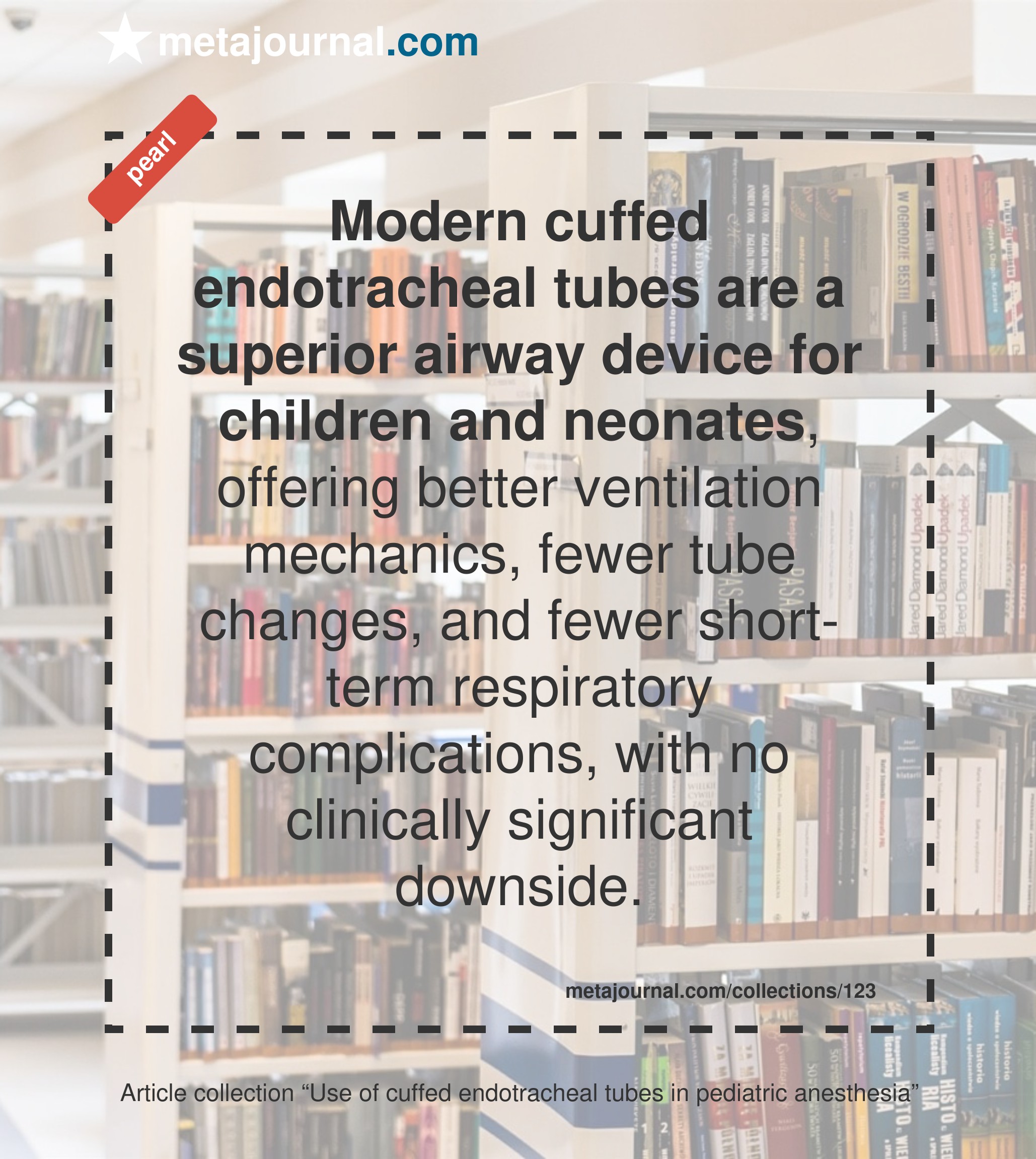 Shah & Carlisle explore the accumulated evidence supporting the shift to cuffed endotracheal tubes by paediatric anaesthetists, both in neonates and older children.
