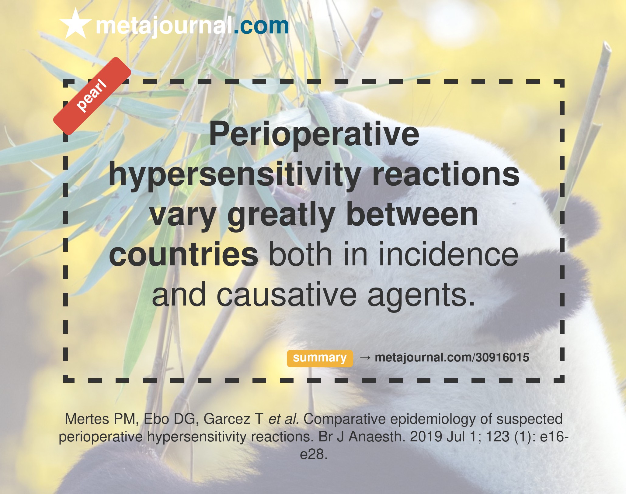 This thorough review of the global epidemiology of perioperative hypersensitivity (POH), reflects our increasing awareness that anaphylaxis varies geographically.
