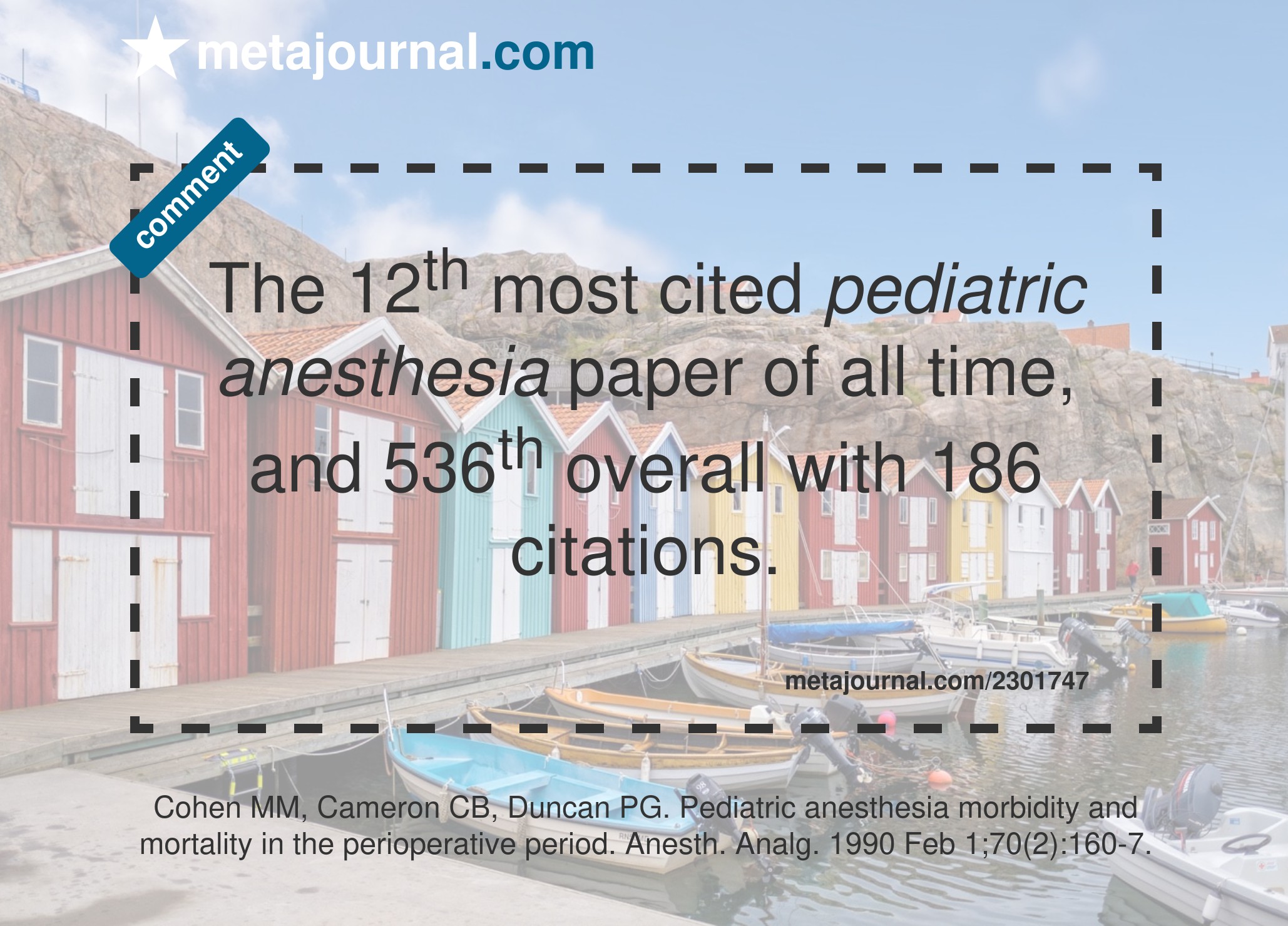 The 12th most cited pediatric anesthesia paper of all time, and 536th overall with 186 citations.
