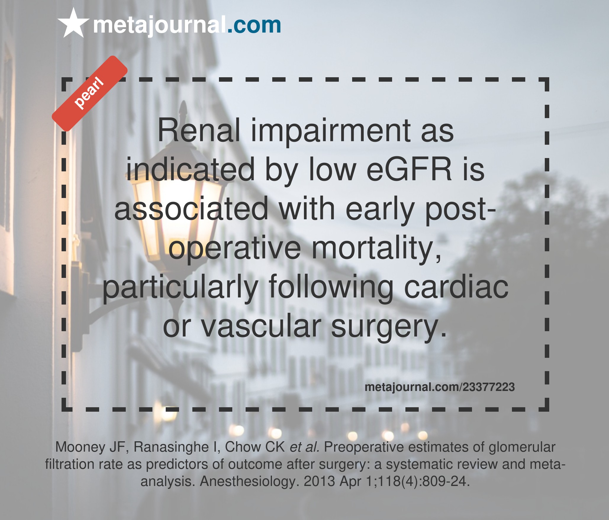 Renal impairment as indicated by low eGFR is associated with early post-operative mortality, particularly following cardiac or vascular surgery.
