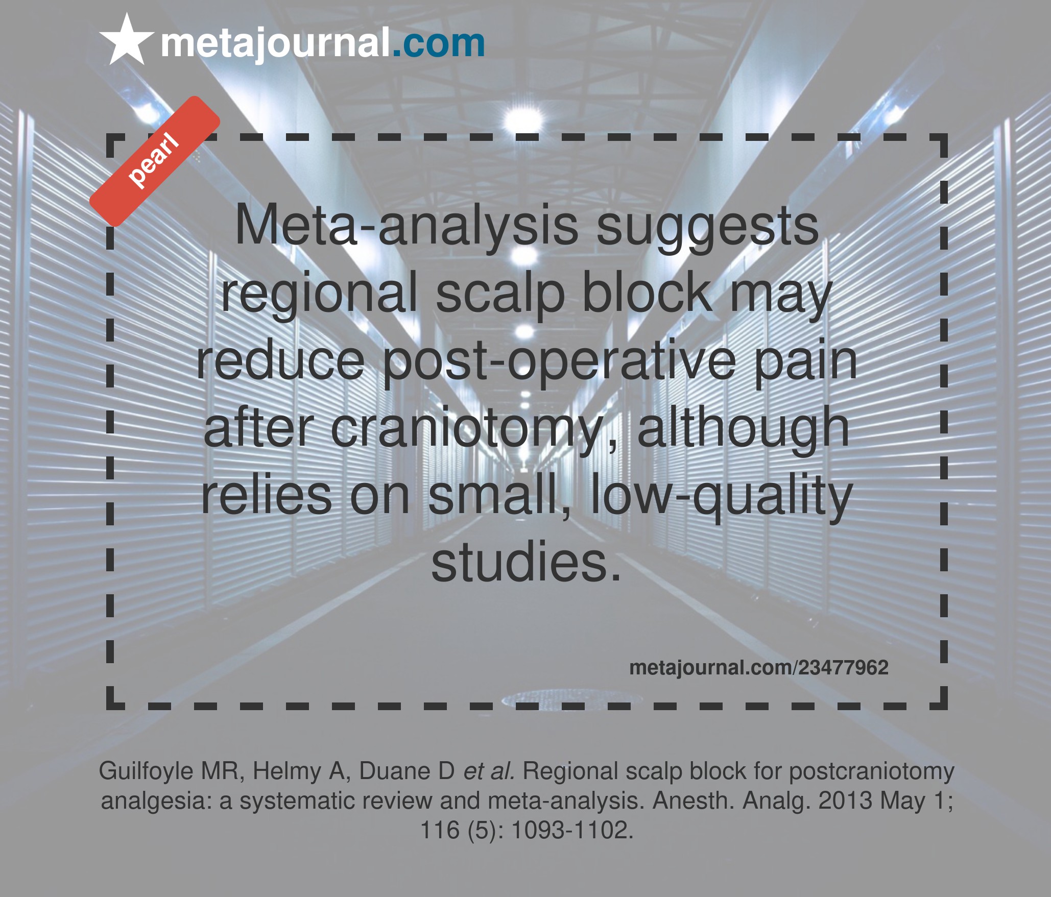 Meta-analysis suggests regional scalp block may reduce post-operative pain after craniotomy, although relies on small, low-quality studies.