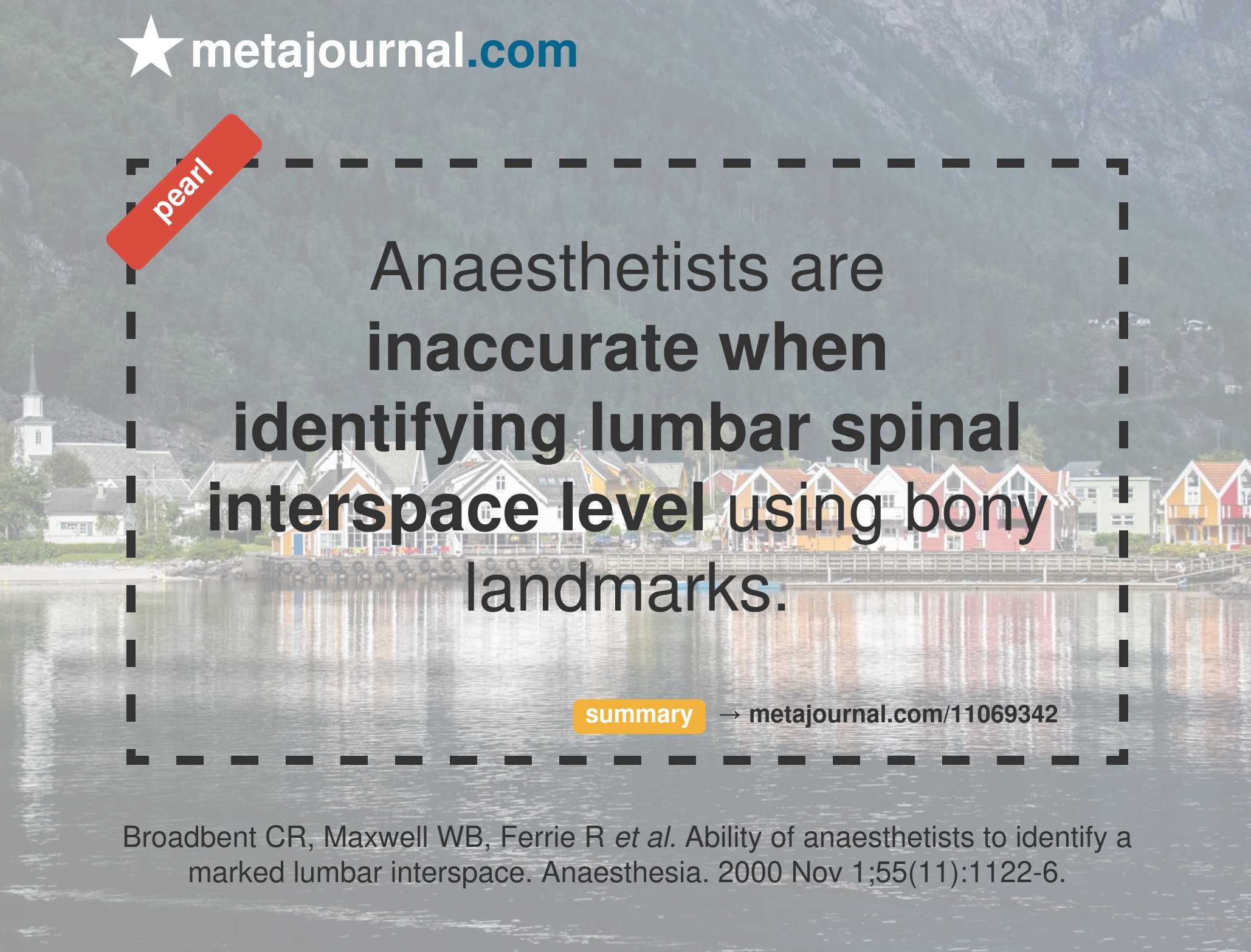 The level of spinal cord termination varies a lot among individuals, as does the level of Tuffier's line3. Considering the inaccuracy of spinal level identification by anaesthetists, there is a lot of potential to place a needle higher than expected.