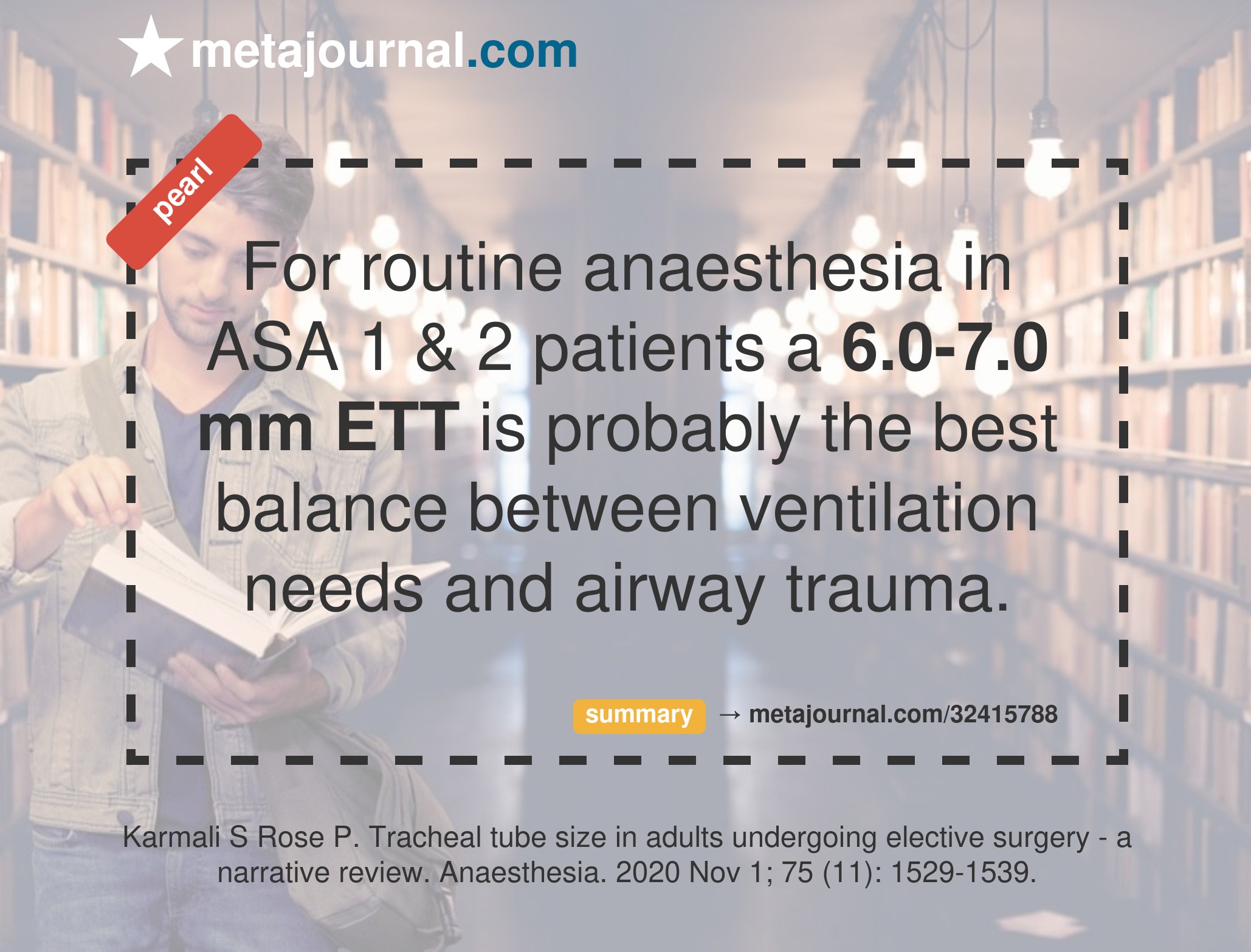 In this review, Karmali & Rose challenge the dogma surrounding endotracheal tube sizing for adult anaesthesia, traditionally sizing based on sex.
