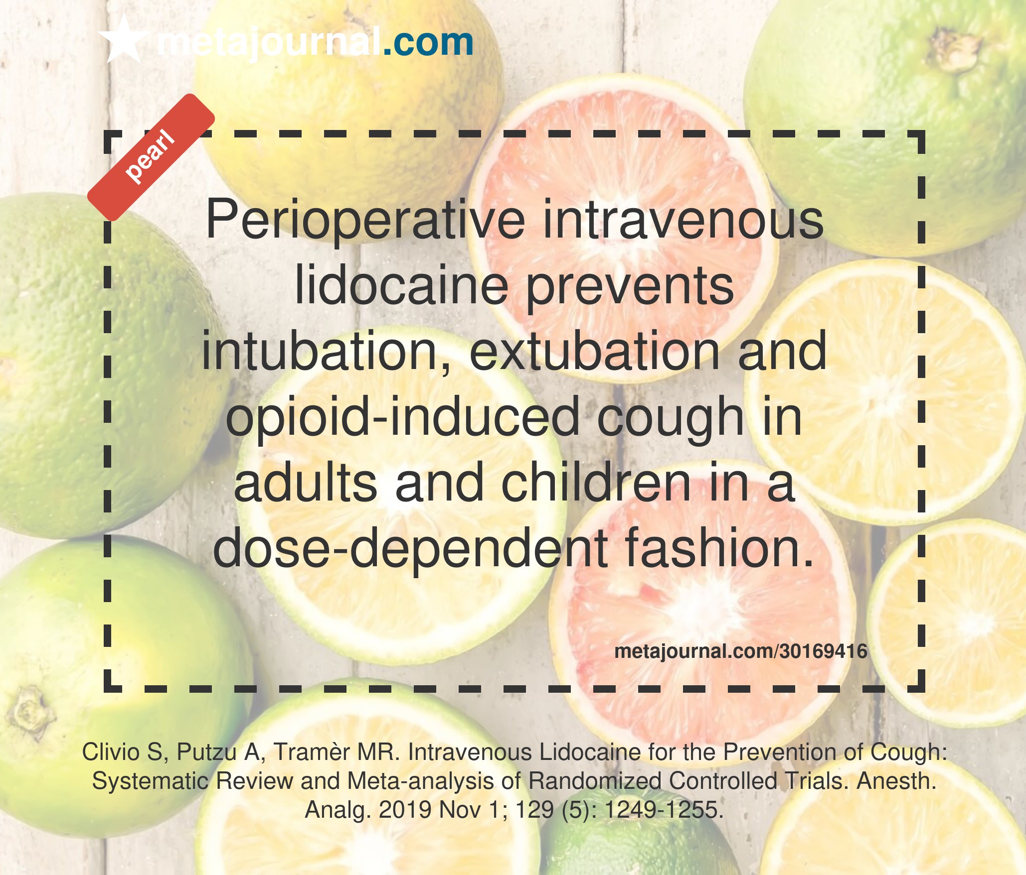 Yang and team performed a high-quality meta-analysis of RCTs investigating the effect of intravenous lidocaine/lignocaine on coughing at extubation. Many of these trials also looked at further secondary effects, such as post-operative sore throat. They included 16 trials, totalling 1,516 subjects. Although the trials demonstrated significant heterogeneity, subgroup analyses still confirmed the study's findings.