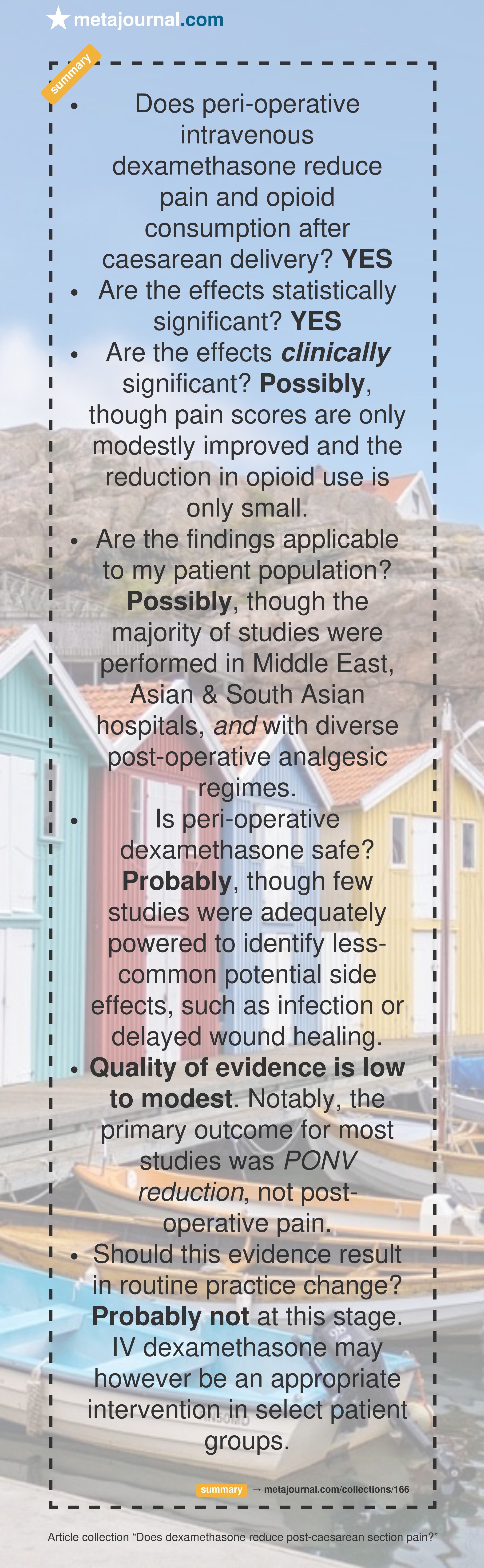 - Does peri-operative intravenous dexamethasone reduce pain and opioid consumption after caesarean delivery? YES