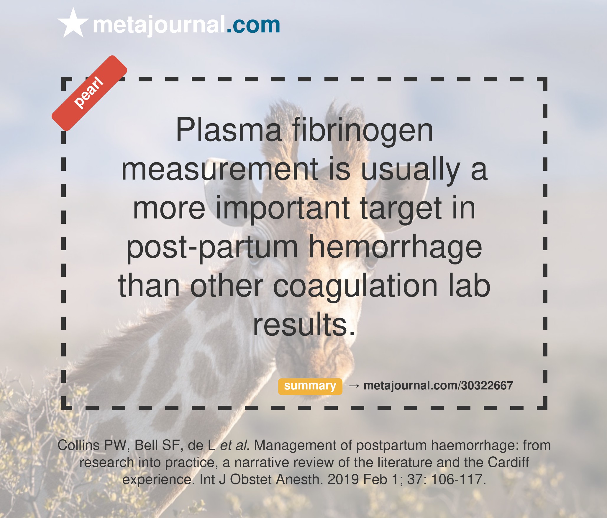 The take-away: Plasma fibrinogen is generally a more important target than PT or APTT in most PPH cases. (Placental abruption is an important exception.)