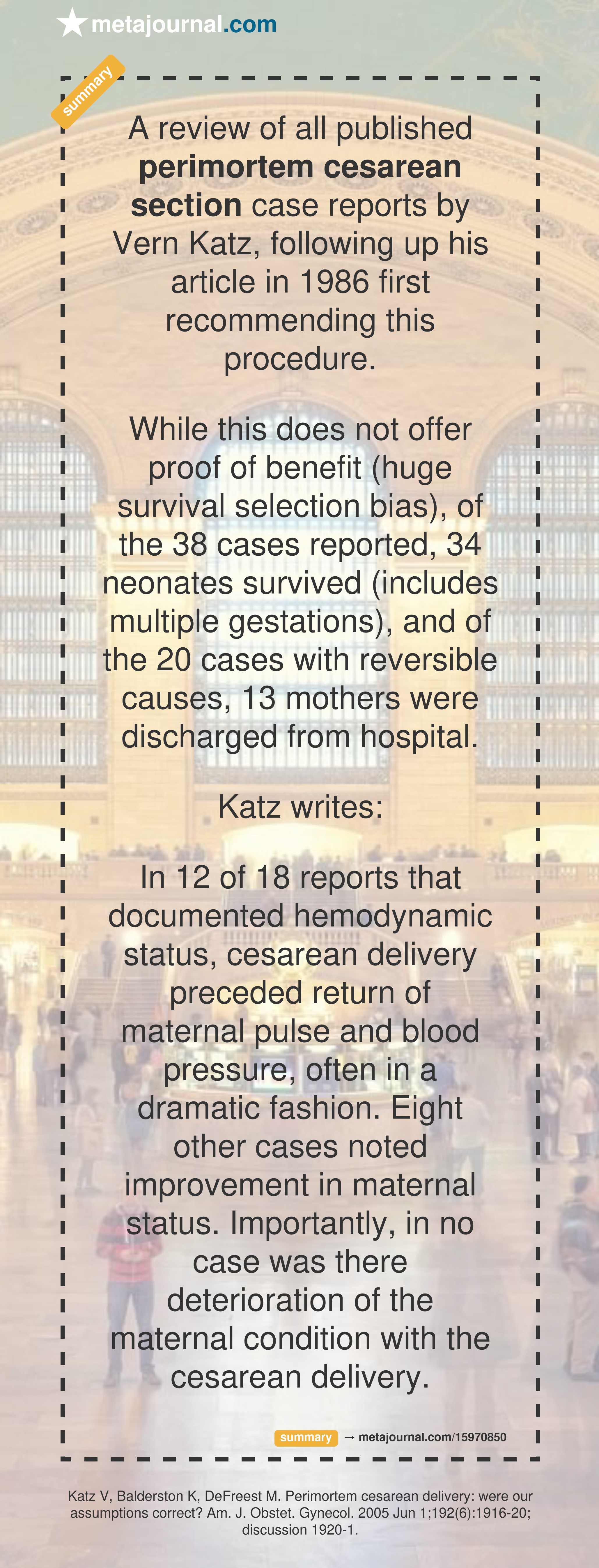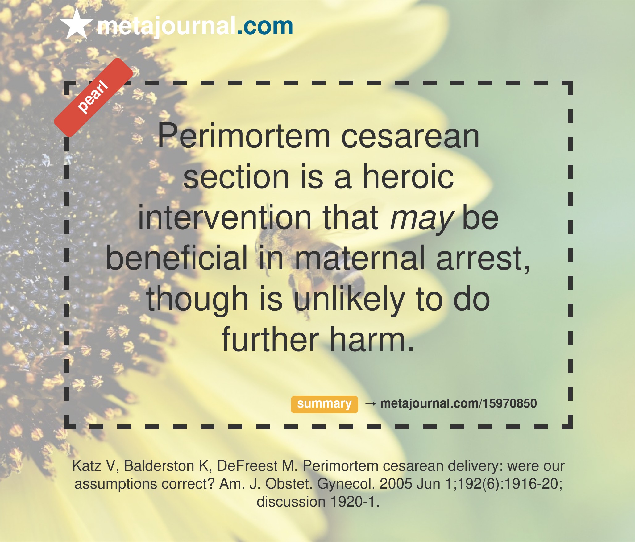 A review of all published perimortem cesarean section case reports by Vern Katz, following up his article in 1986 first recommending this procedure.