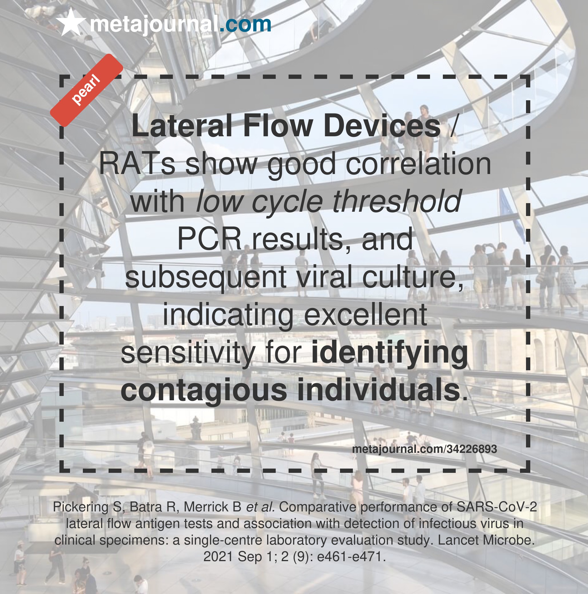 Growing research over the last 12 months shows that adequately-sensitive RATs are effective at identifying infectious individuals, even if the high-sensitivity of PCR testing identifies viral particles in those who are infected but otherwise non-infectious (either pre-infectious, or post-infectious with ongoing viral shedding).