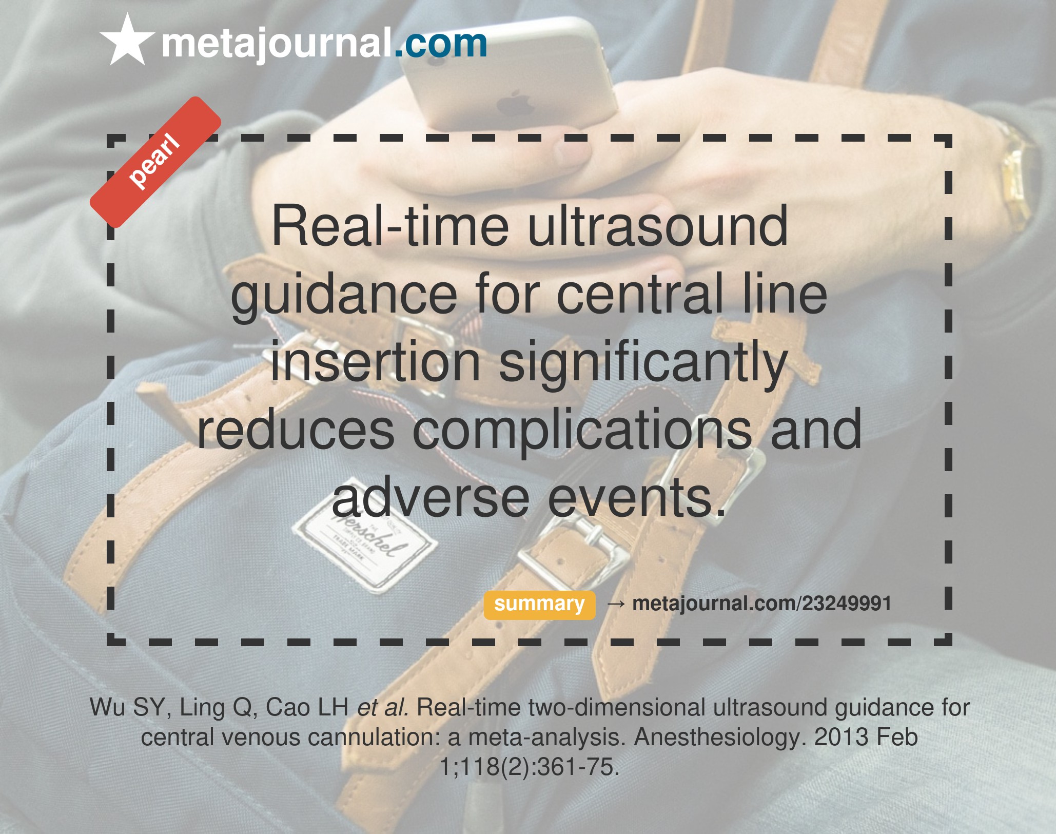 Real-time ultrasound guidance of central line insertion dramatically reduces the incidence of procedural failure (RR 0.18), arterial puncture (RR 0.25), haematoma (RR 0.30), pneumothorax (RR 0.21), and haemothorax (RR 0.10). Studies specifically investigating children and infants were however too small to make significant conclusions.