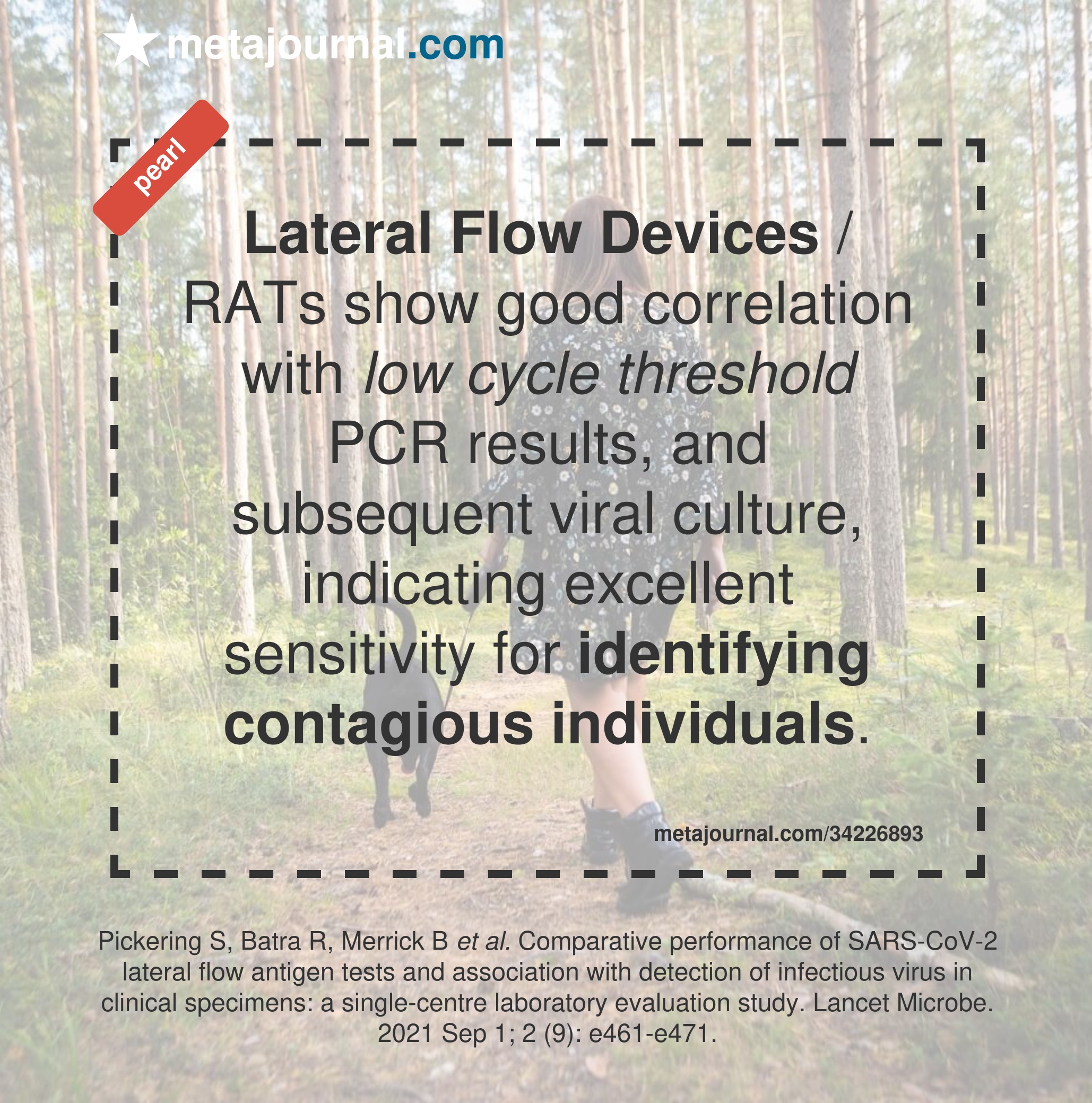 Growing research over the last 12 months shows that adequately-sensitive RATs are effective at identifying infectious individuals, even if the high-sensitivity of PCR testing identifies viral particles in those who are infected but otherwise non-infectious (either pre-infectious, or post-infectious with ongoing viral shedding).