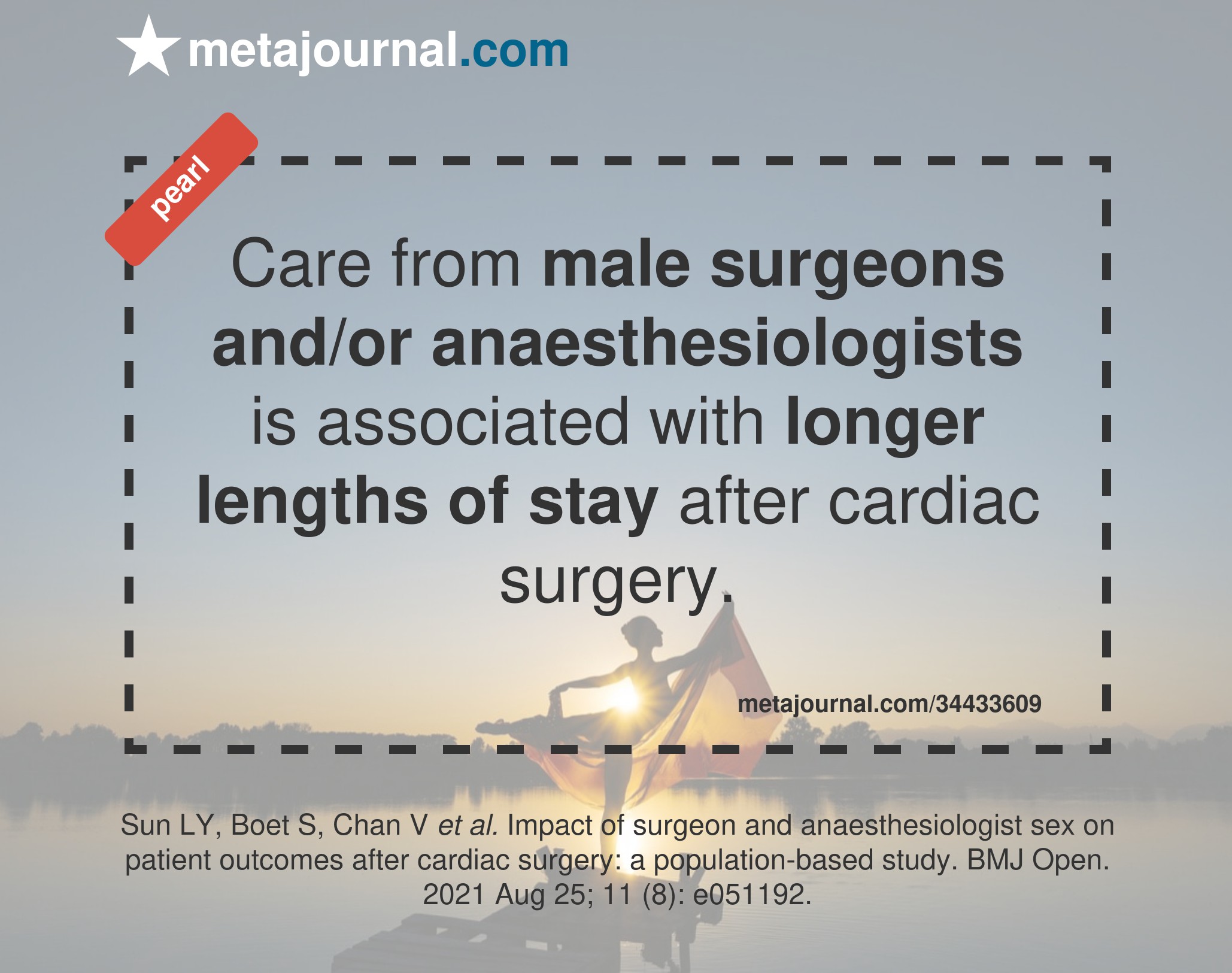 Fascinating big-data study covering 12 years of the 20-most-common surgical procedures in Ontario, Canada. Wallis, Jerath & co. investigated how patient-surgeon sex discordance correlated to a composite for adverse postoperative outcomes. (A deeper investigation of the related Wallis 2017 study).