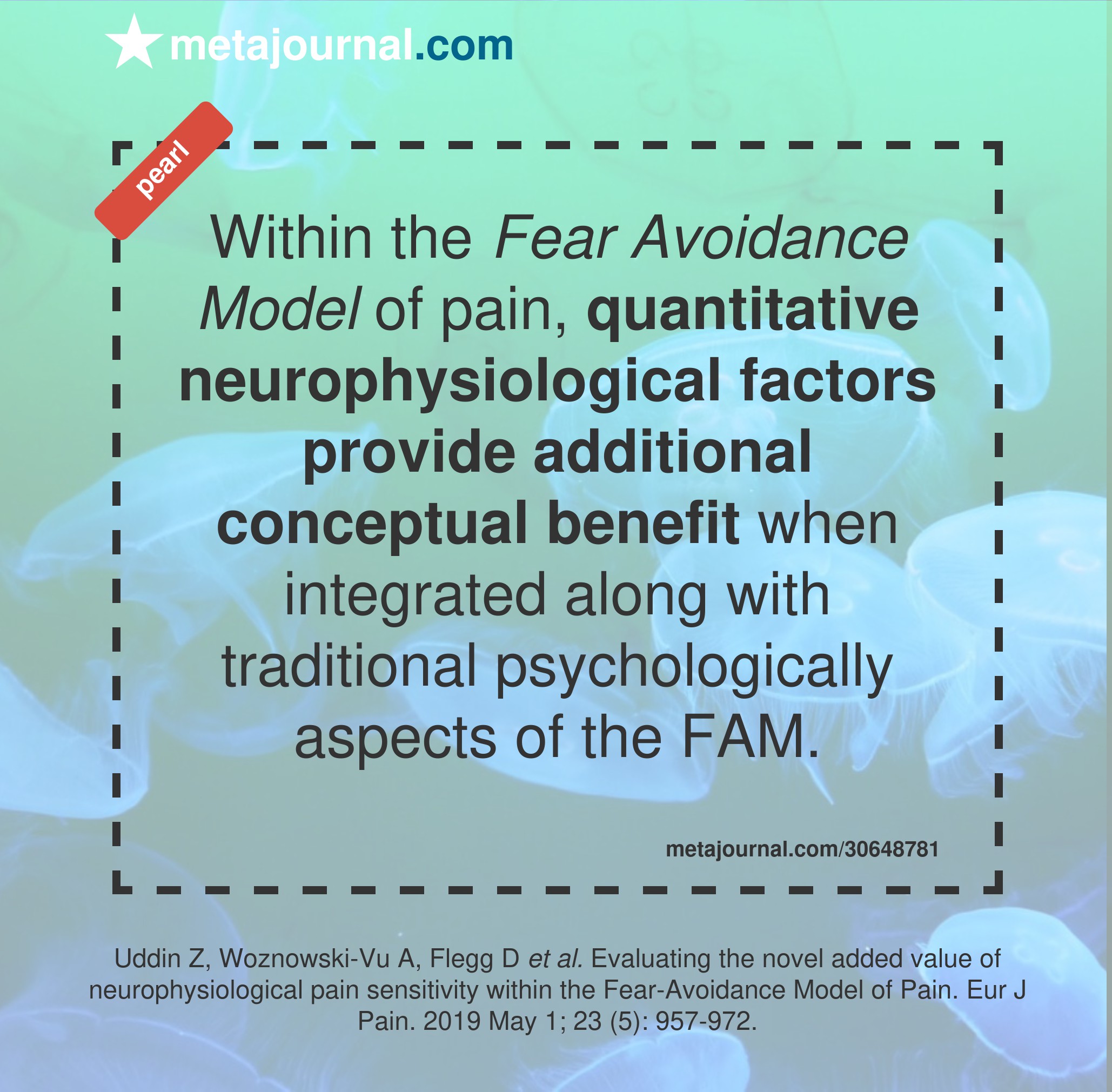 Within the Fear Avoidance Model of pain, quantitative neurophysiological factors provide additional conceptual benefit when integrated along with traditional psychologically aspects of the FAM.