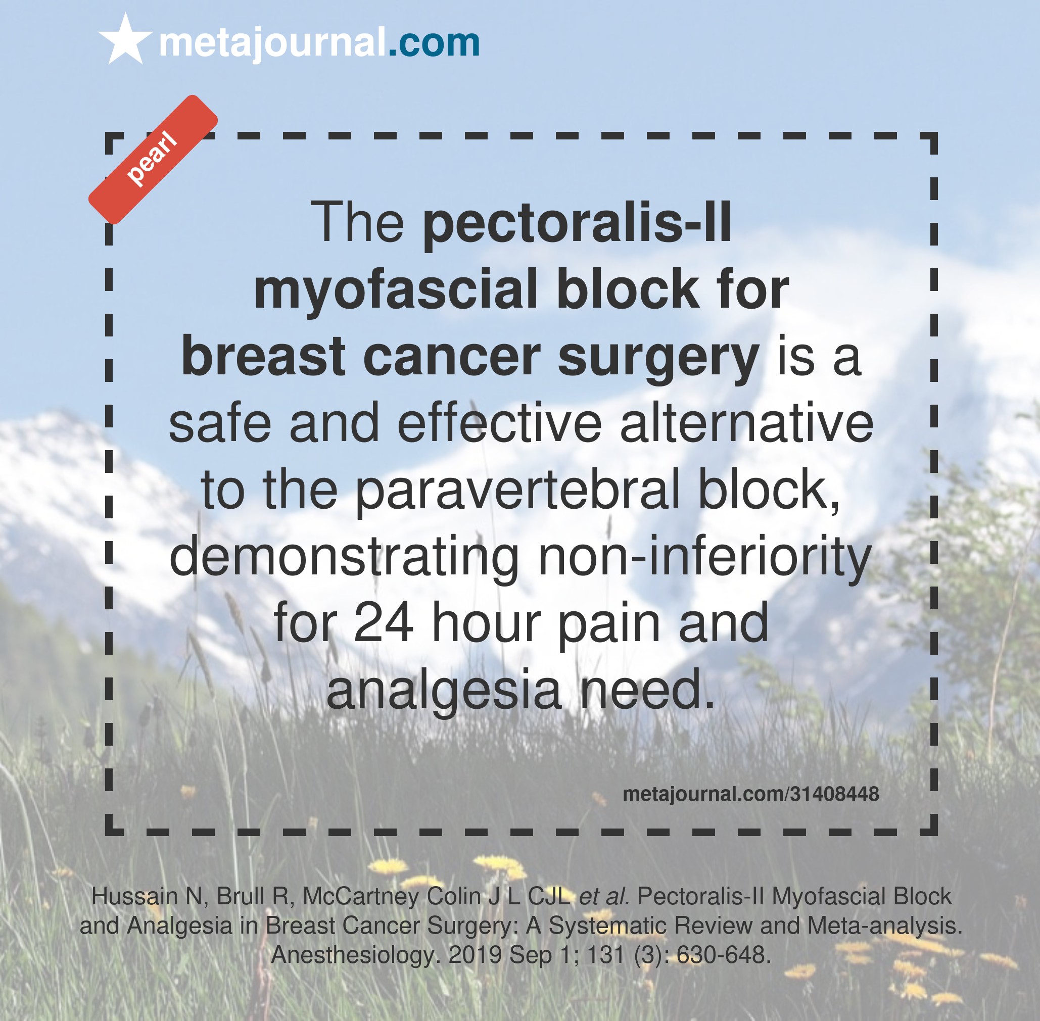 The pectoralis-II myofascial block for breast cancer surgery is a safe and effective alternative to the paravertebral block, demonstrating non-inferiority for 24 hour pain and analgesia need.