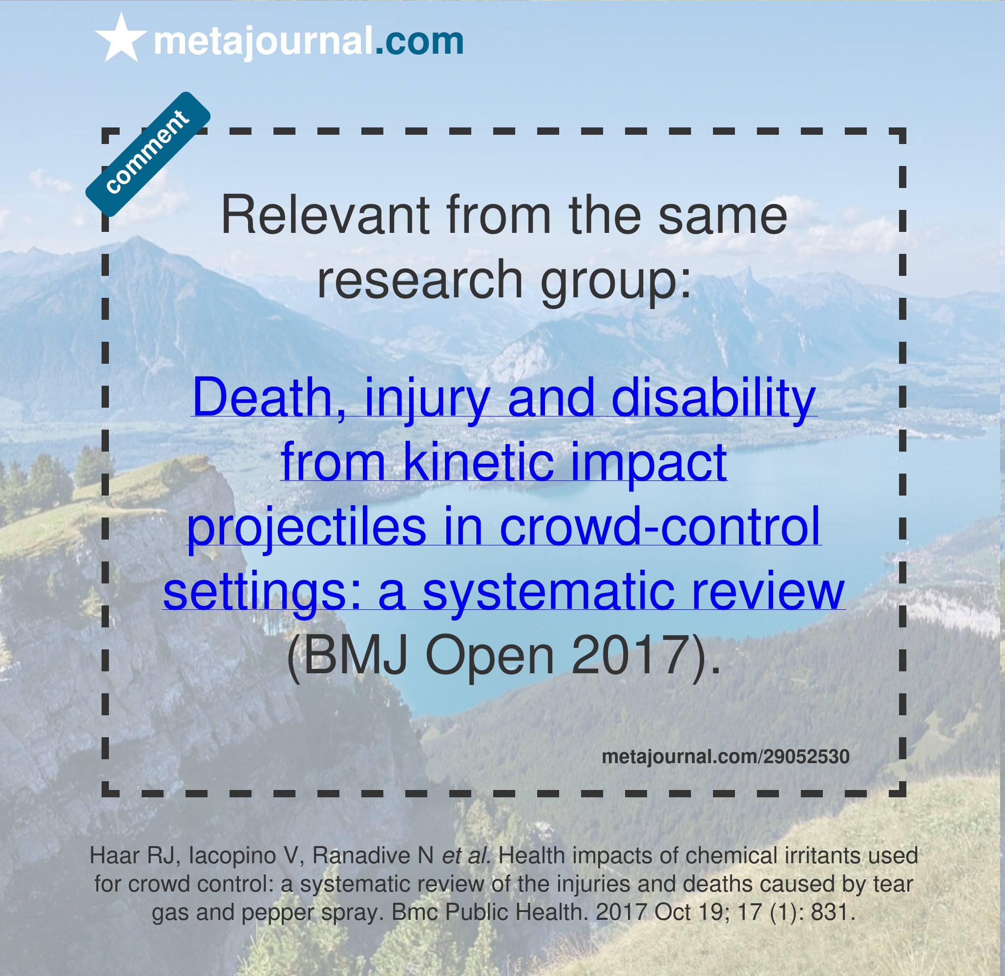 Death, injury and disability from kinetic impact projectiles in crowd-control settings: a systematic review (BMJ Open 2017).