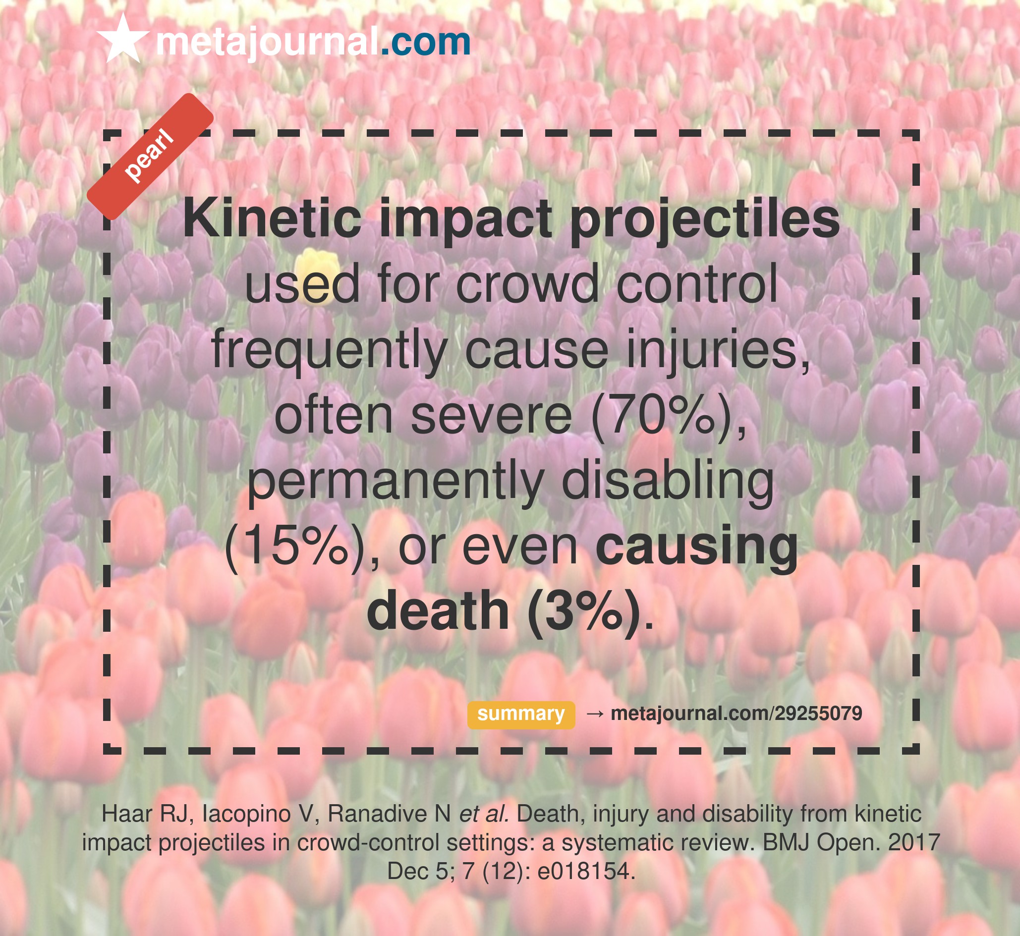 This systematic review out of Berkeley investigated data on death, injury and disability resulting from crowd control projectiles: