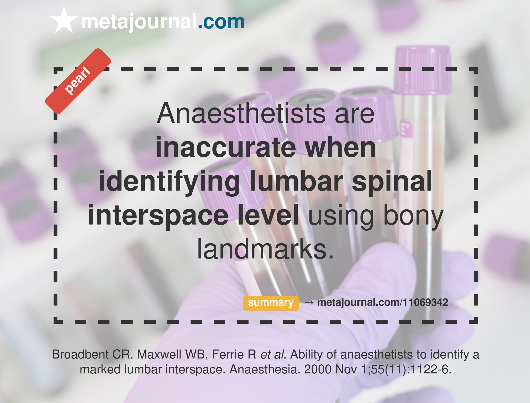 When anaesthetists were assessed on their ability to correctly identify a lumbar interspace level in 100 patients undergoing spinal MRI:
