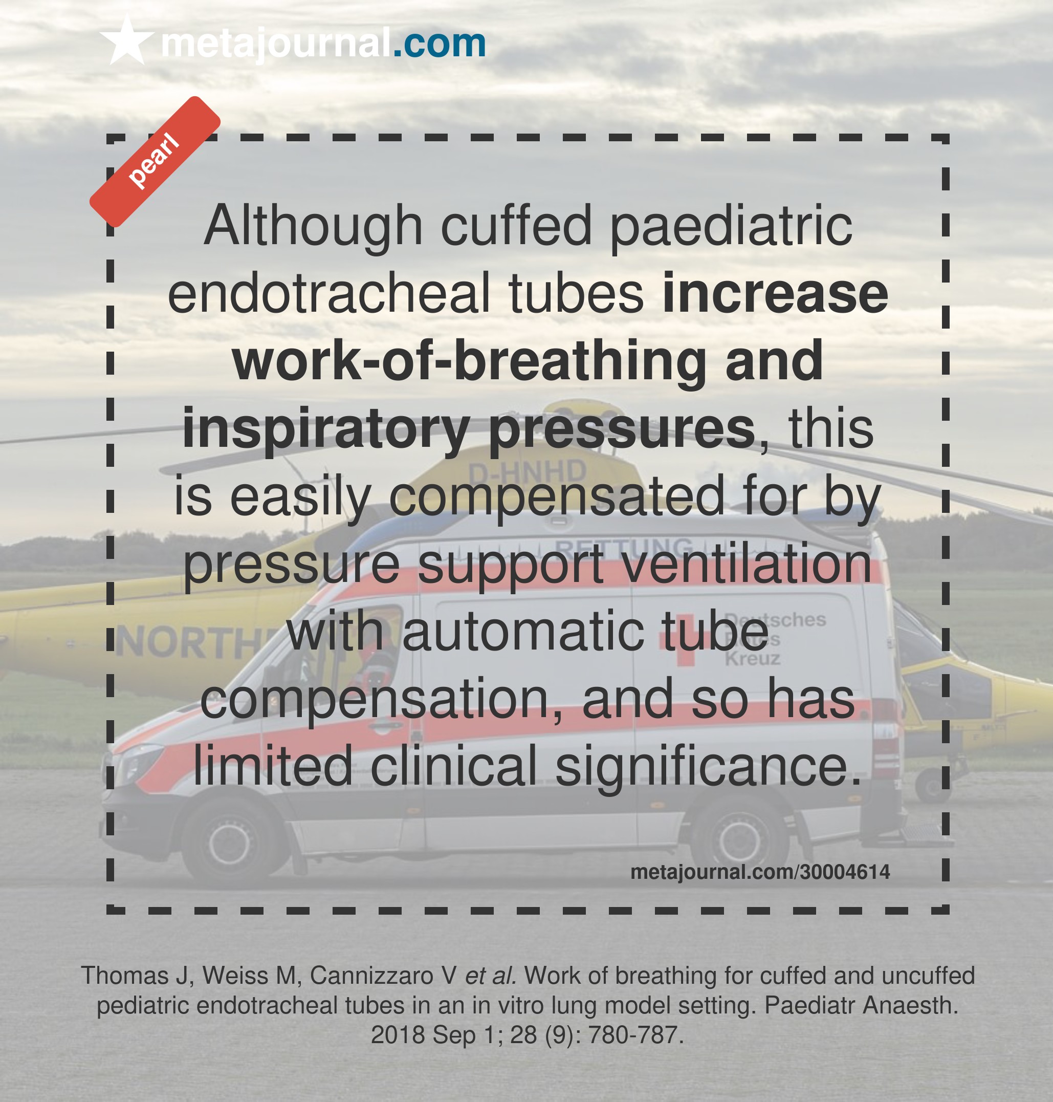 Addressing concern for increased work-of-breathing and higher inspiratory pressures when using a 0.5 mm smaller ID tube, Shah & Carlisle note Thomas et al.'s 2018 laboratory study showing any such effect is easily compensated for with pressure support and automatic tube compensation.