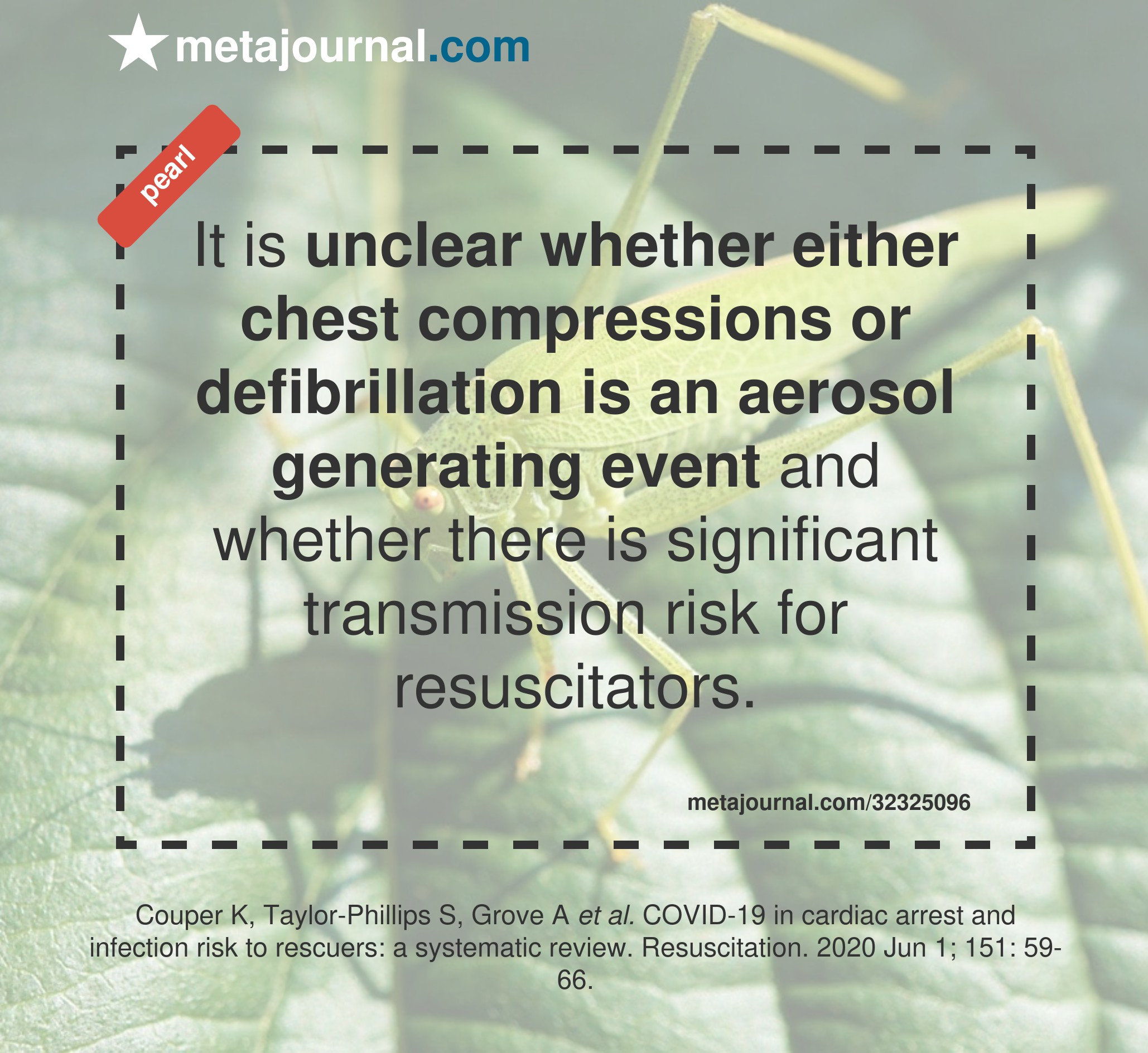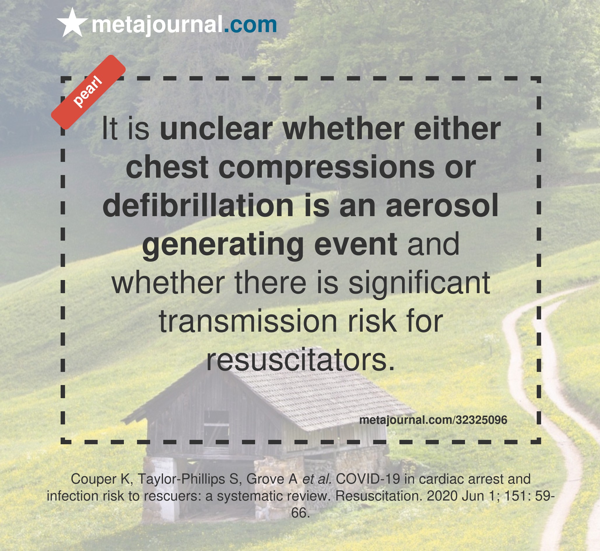 It is biologically plausible that chest compressions could generate an aerosol, but only in the same way that an exhalation breath would do. No other mechanism exists to generate an aerosol other than compressing the chest and an expiration breath, much like a cough, is not currently recognised as a high-risk event or an AGP.” NERVTAG also stated that it “does not consider that the evidence supports chest compressions or defibrillation being procedures that are associated with a significantly increased risk of transmission of acute respiratory infections.”