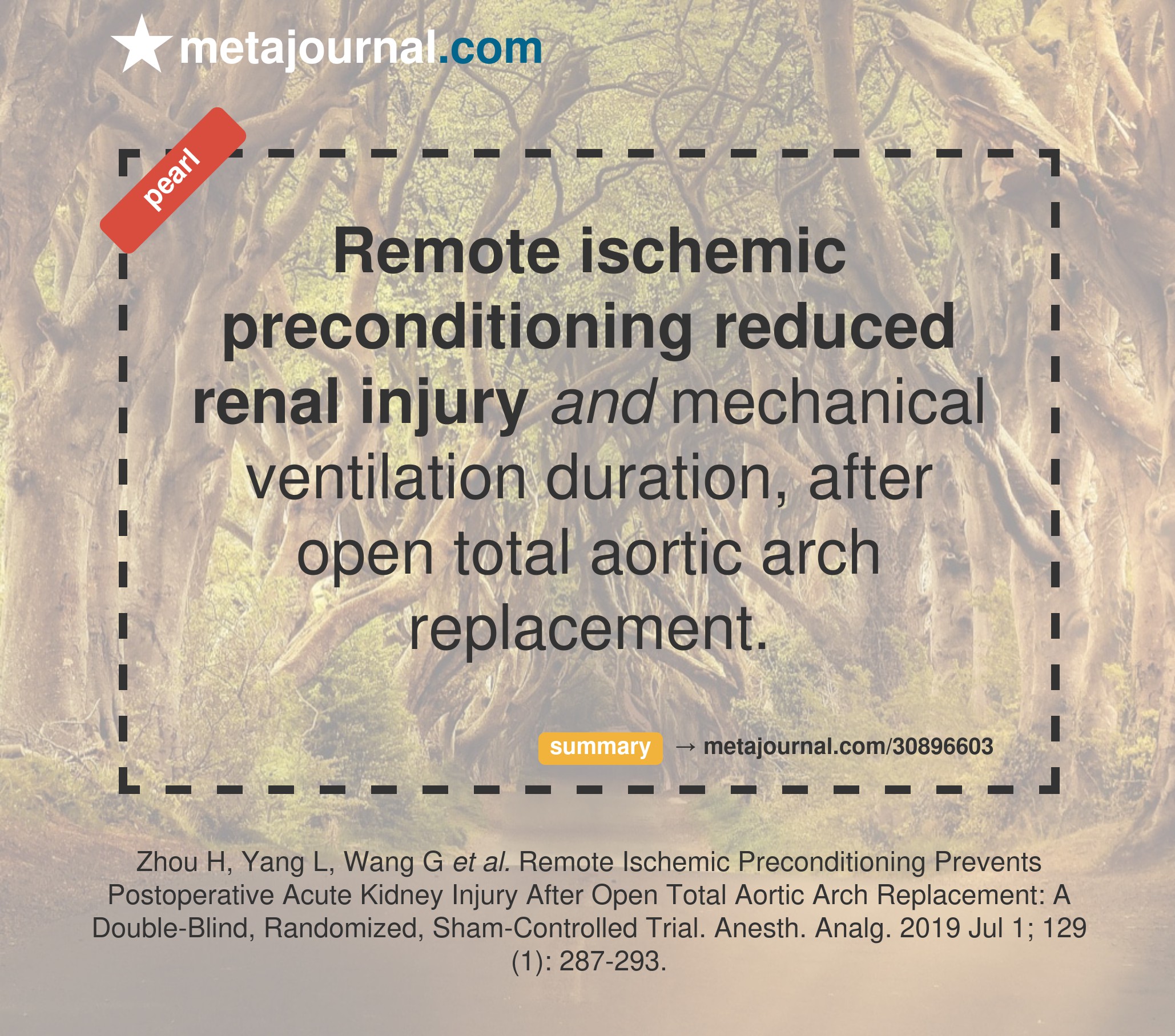 This Shanghai research team randomised 130 patients undergoing open aortic arch replacement to receive either remote ischaemic preconditioning (4x 5-min-up 5-min-down) or sham preconditioning.