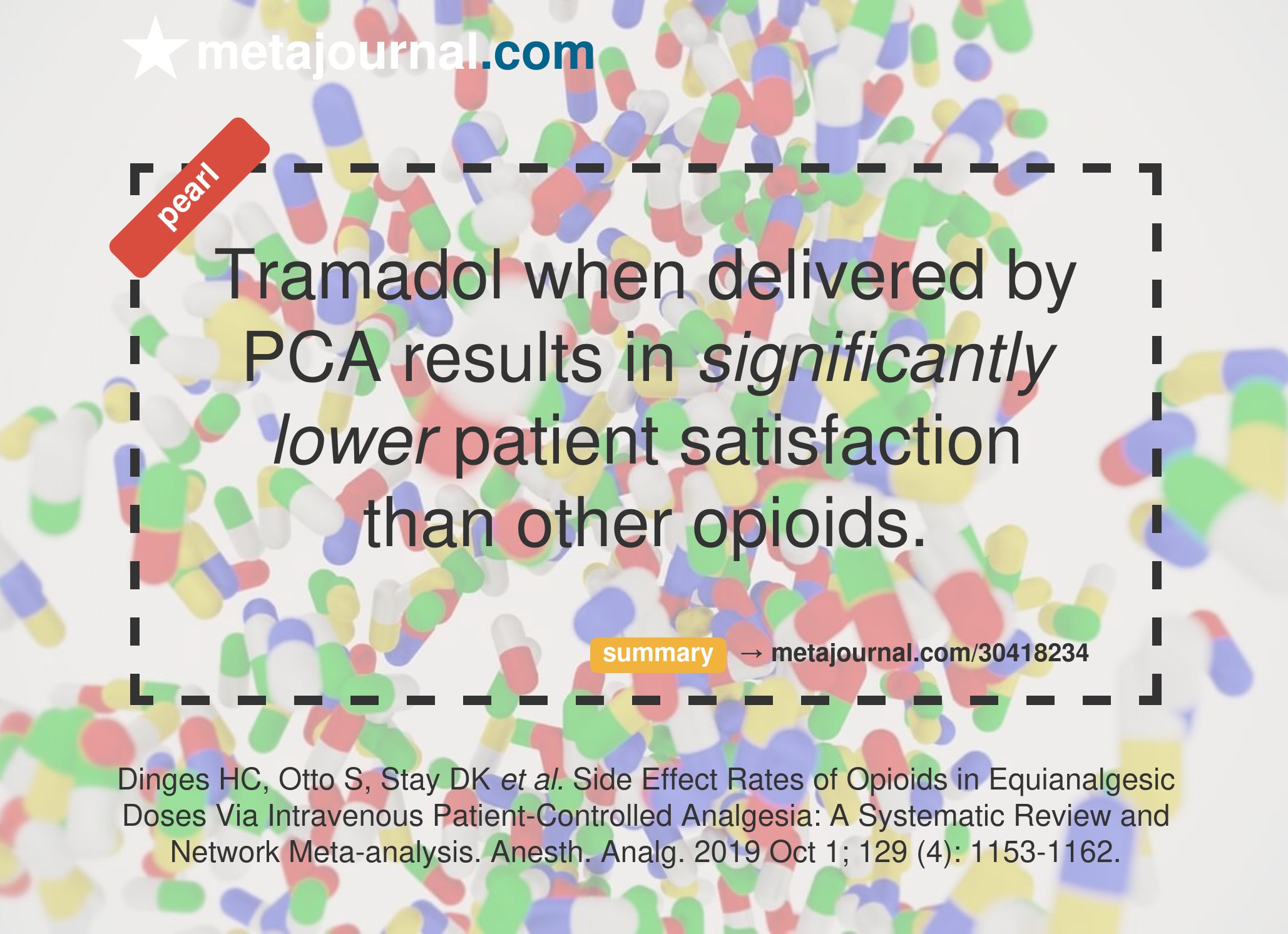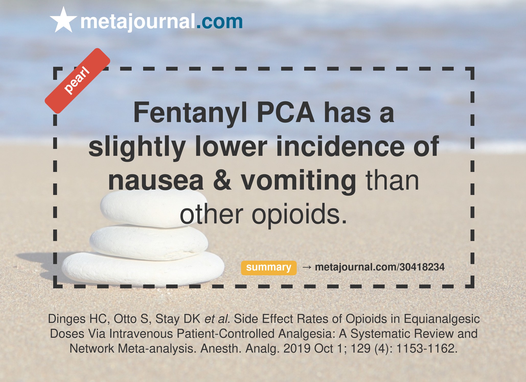 Dinges et al. performed a network meta-analysis of 63 studies covering 16 different PCA opioids, comparing side-effects at equianalgesic doses. Morphine was used as the baseline comparator.
