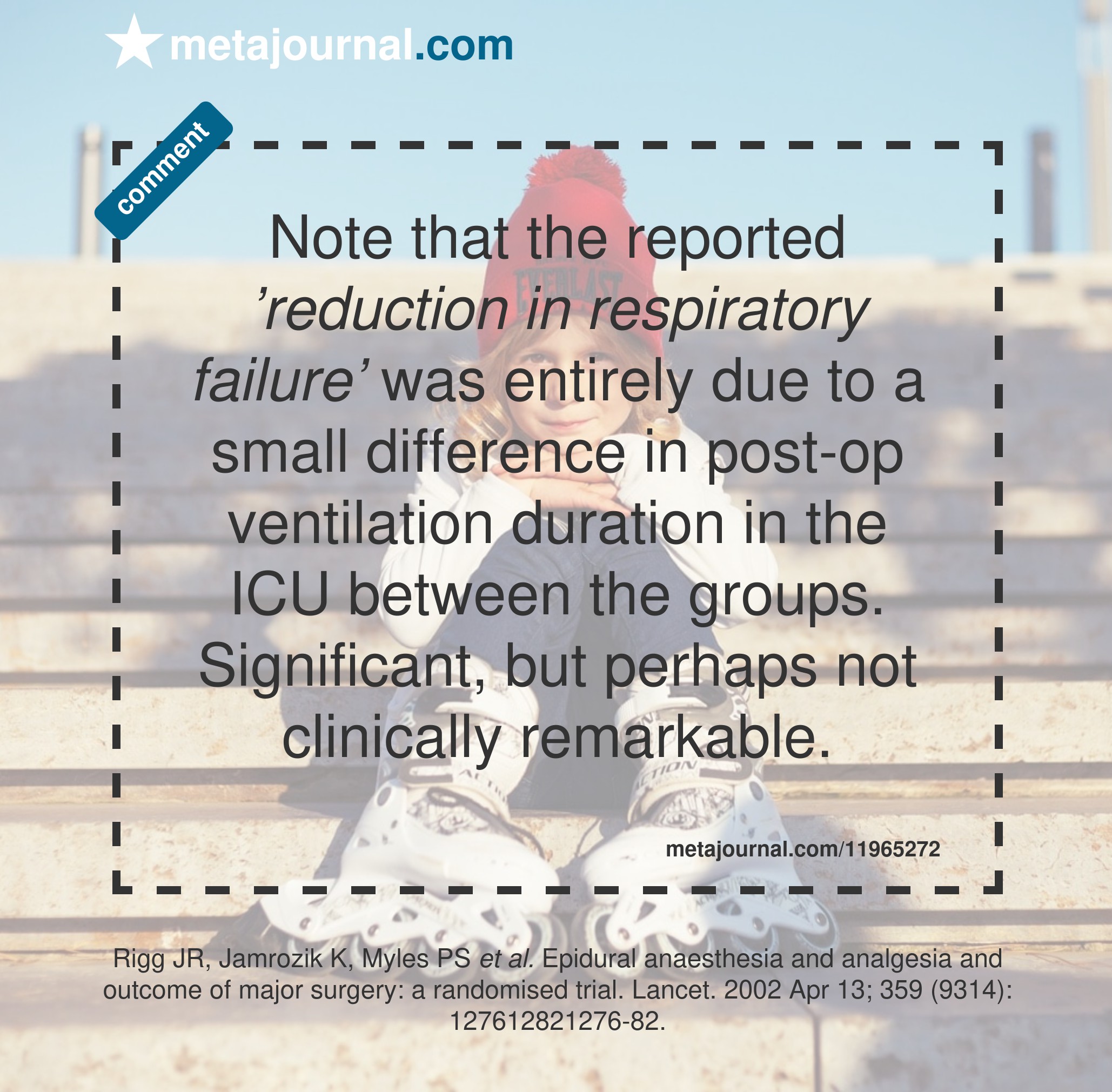 Note that the reported ’reduction in respiratory failure’ was entirely due to a small difference in post-op ventilation duration in the ICU between the groups. Significant, but perhaps not clinically remarkable.