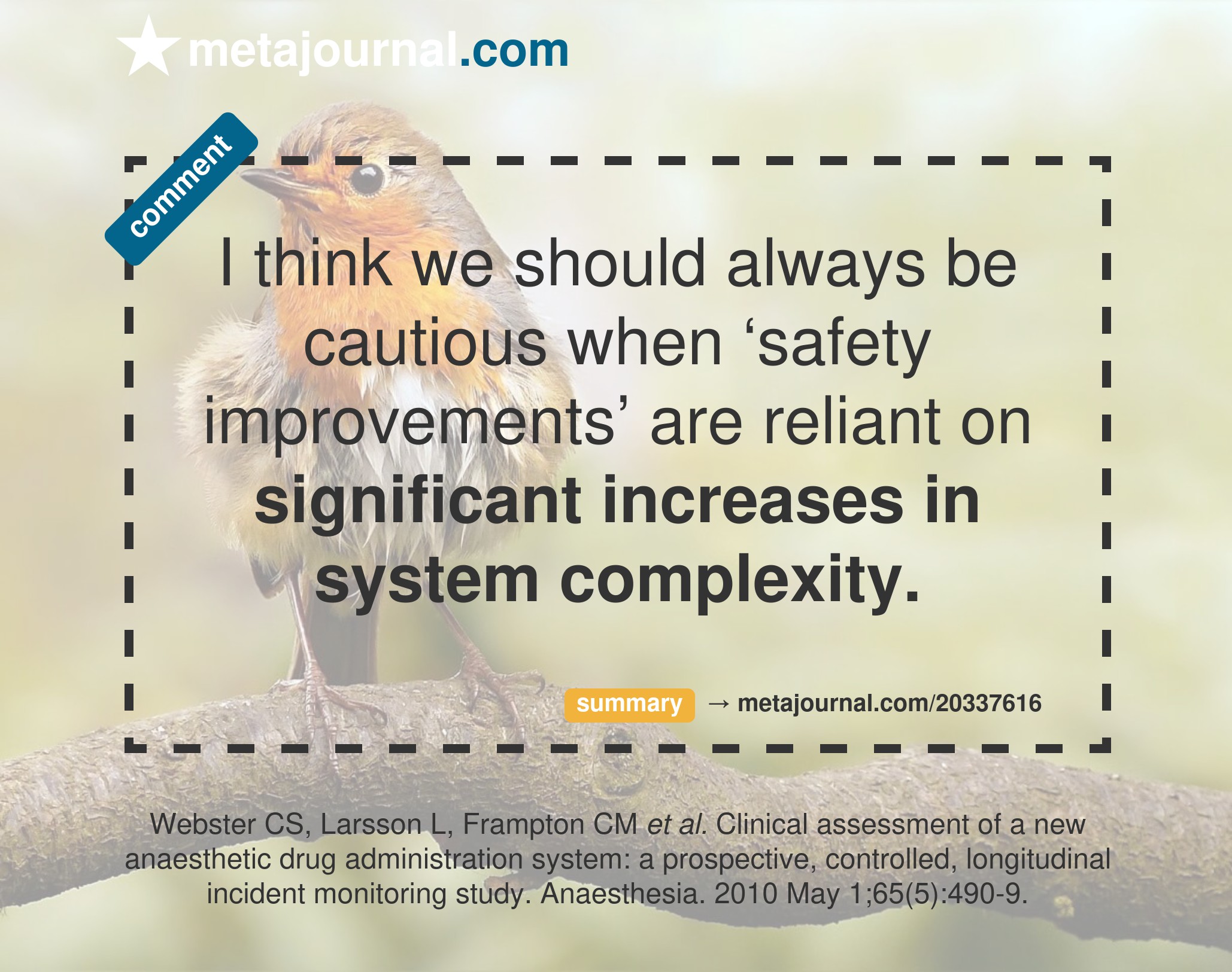 - Webster (2001): The frequency and nature of drug administration error during anaesthesia
