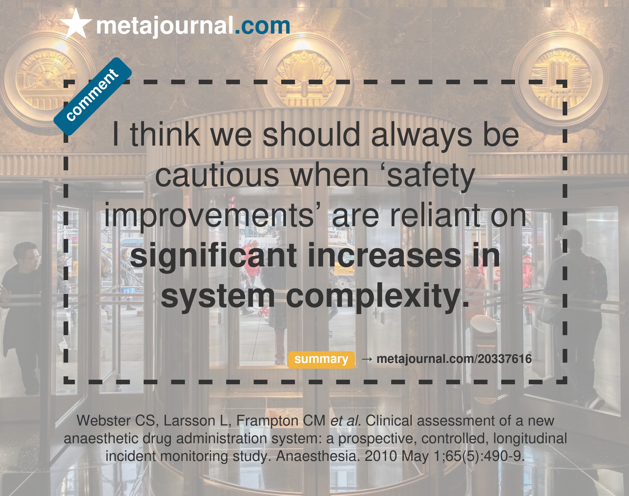 Nonetheless a refreshing and novel approach to anaesthetic drug safety, beyond the typical admonishment to just be safer.