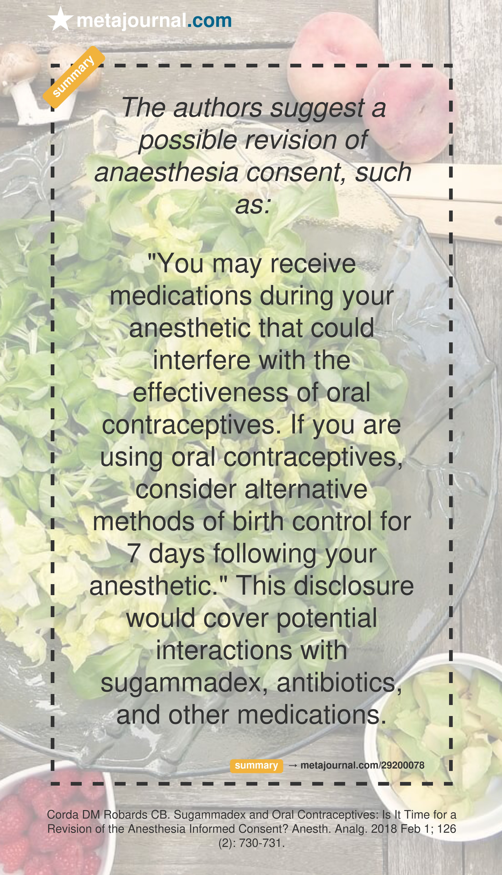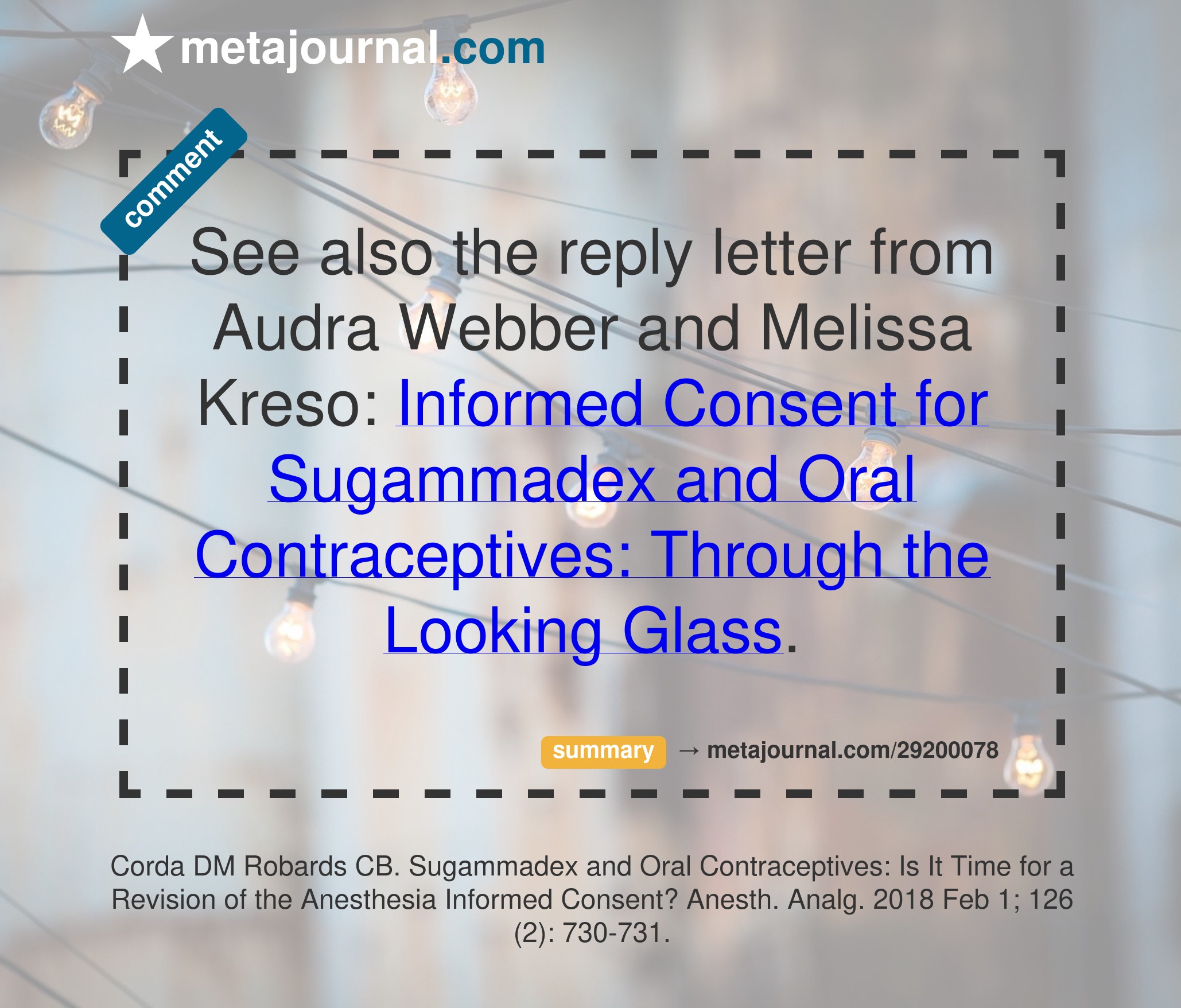 See also the reply letter from Audra Webber and Melissa Kreso: Informed Consent for Sugammadex and Oral Contraceptives: Through the Looking Glass.