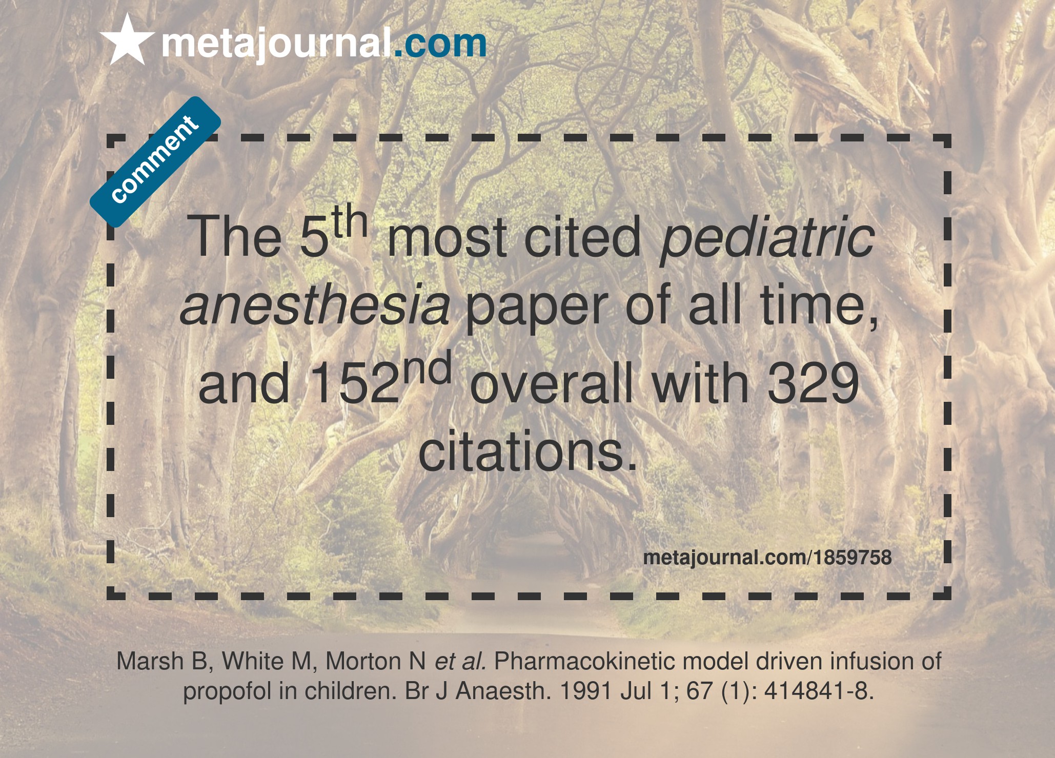 The 6th most cited pediatric anesthesia paper of all time, and 186th overall with 302 citations.